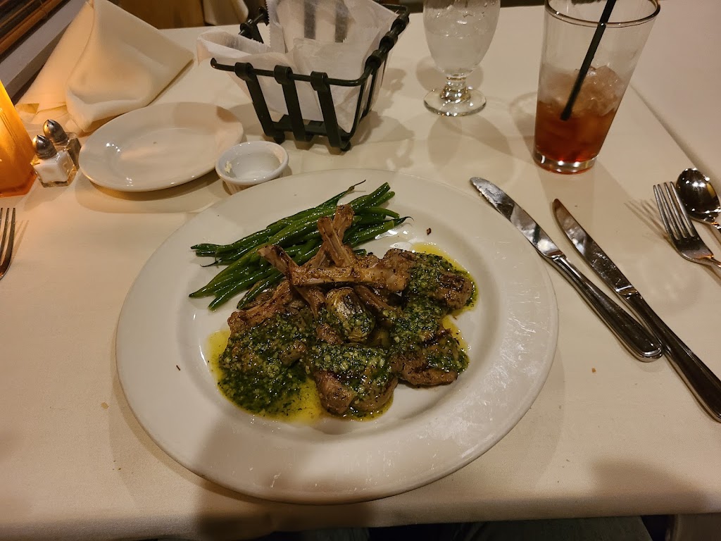 Highly recommend this restaurant for date night! Lamb chops and petite filled was delicious! Chocolate mouse is the best dessert! So good!