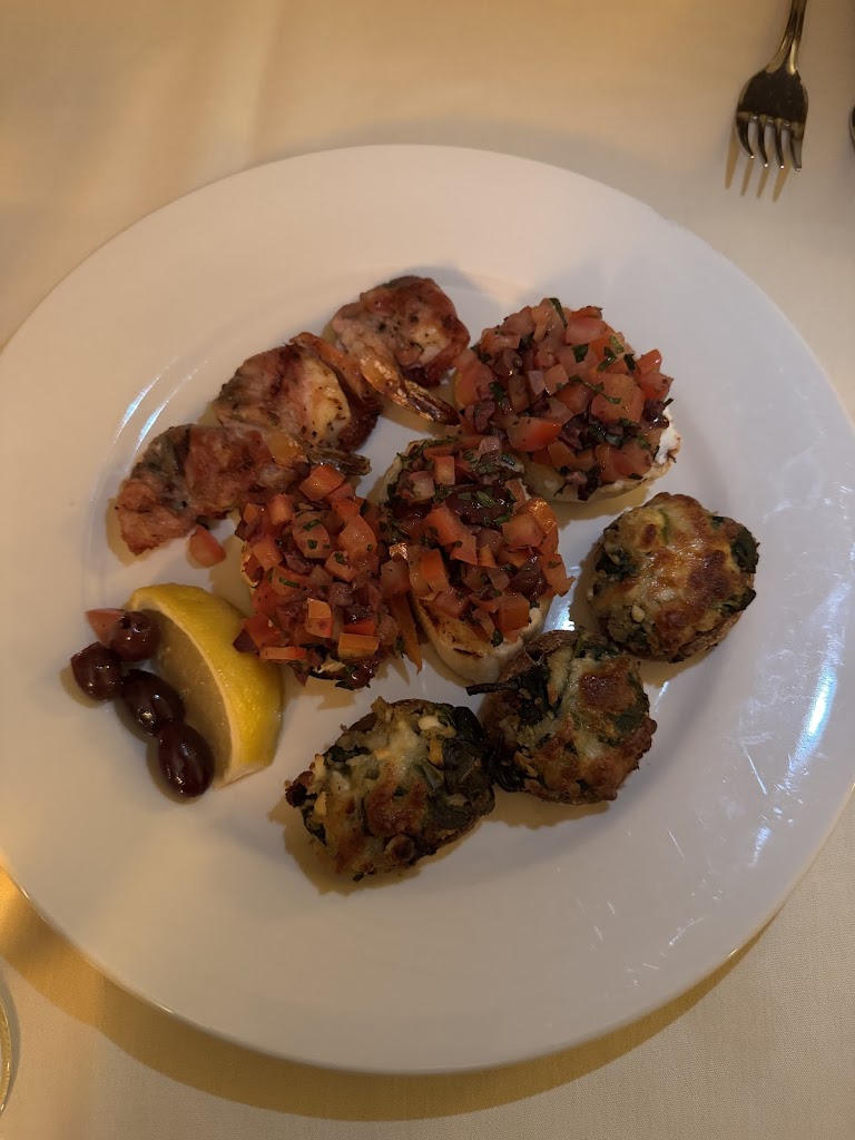 For an appetizer we started off with the Otto’s sample platter. Which included bruschetta, stuffed mushrooms and prosciutto wrapped shrimp.