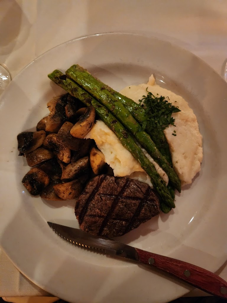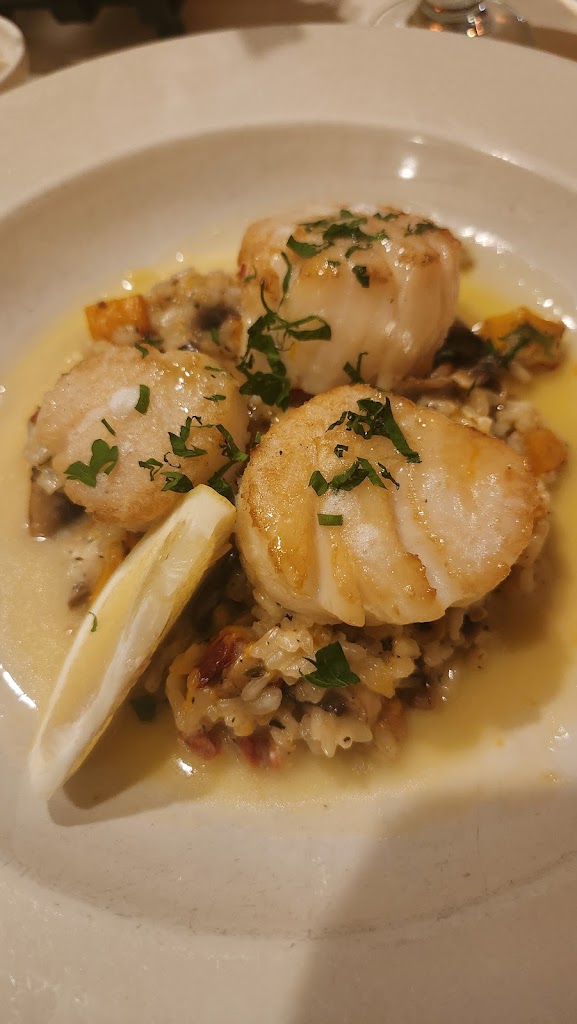 Ordered the filet and added 3 scallops. Food came, no scallops. “There was a misunderstanding in the kitchen” ate the most mediocre at best filet of my life. Saving grace, the green beans were spot on. Half way through dinner the most undercooked scallops I’ve ever seen came out. I passed on them, as there was zero sear and still jelly on the middle. 10 min after finishing my meal, a new set of scallops arrive. New excuse, “American scallops don’t sear like others”