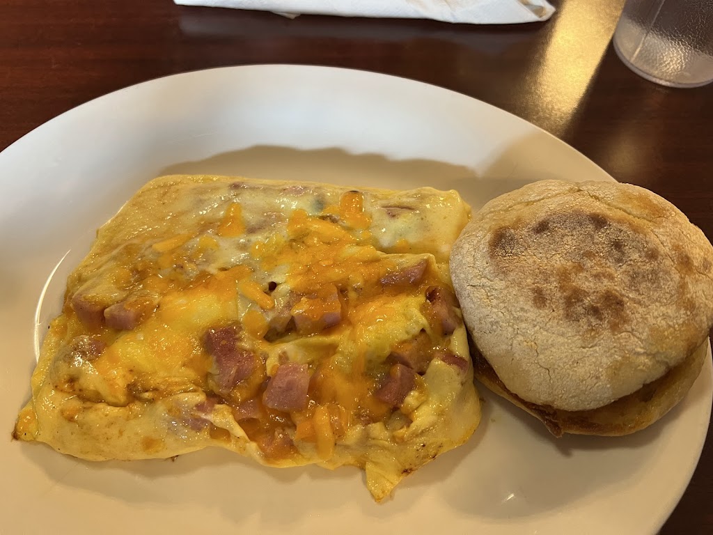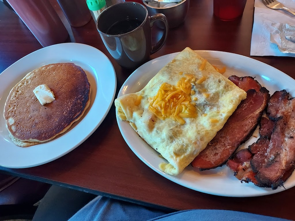 MMMmm you can tell they use quality ingredients. It's real thick bacon and the fluffiest of pancakes. And the ham in the Western omelet is like they took a ham
