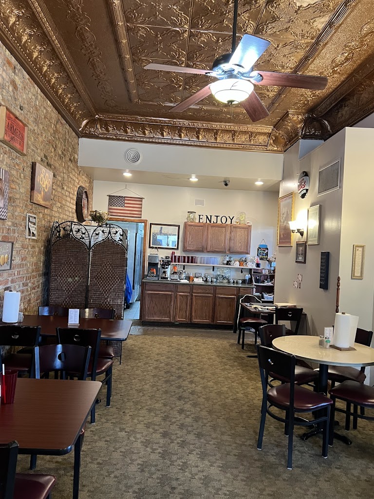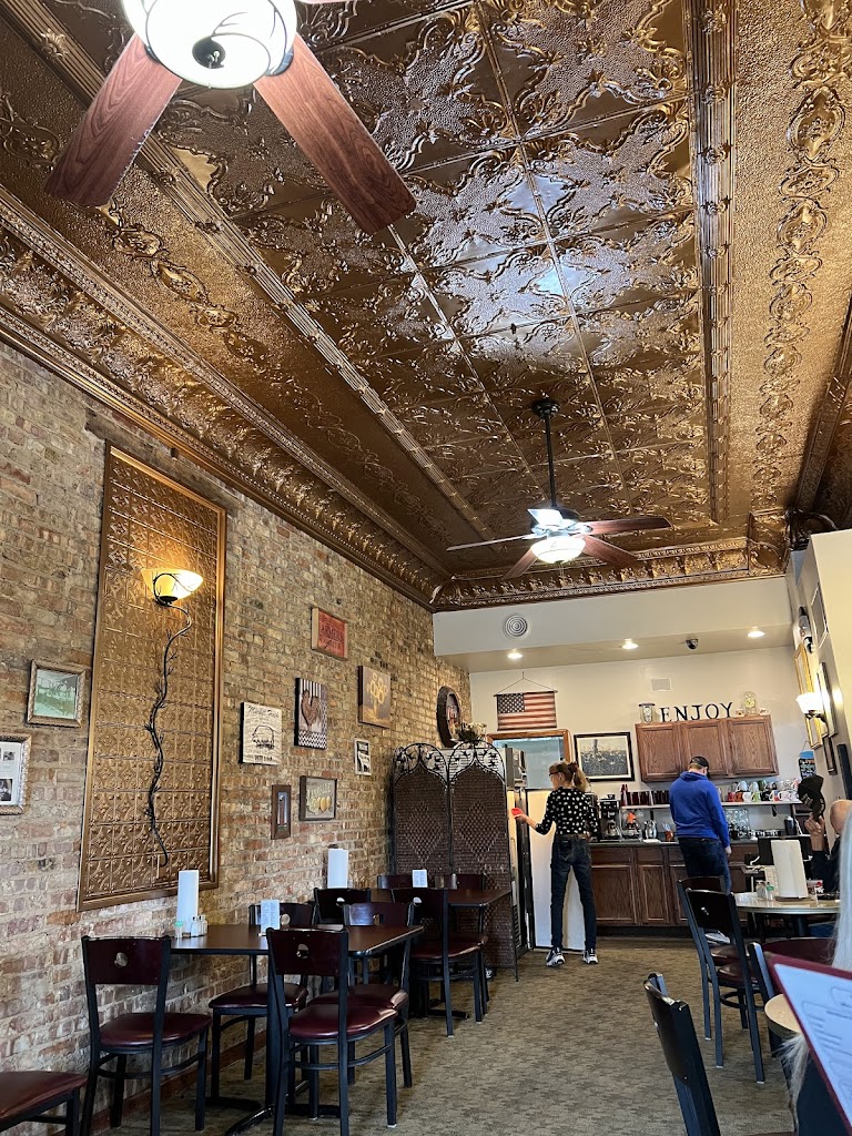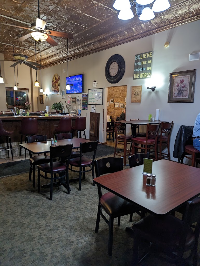 Sheila was a very friendly, efficient, & spirited, making our lunch visit more fun. Portions were generous on the fish fry choices. Guessing the building was perhaps 1900, with the tin decorative ceiling. Prices fair.