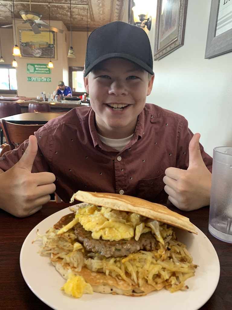 My boyfriend and daughter really liked the breakfast sausage and pancake. Good service, good food, we will definitely be back.
