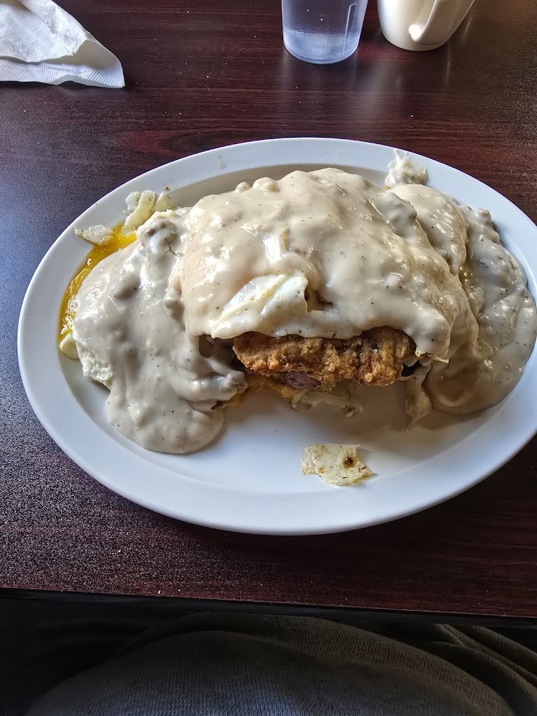 First time eating here was great almost everything homemade and gravy was so good I had biscuits gravy wife this plate called the stacker we lived here 5 years moved away 2 years ago nice too see new family owned restaurant next time going too try lunch lady that served us said hand patty hamburger and hand breaded homemade stuff for lunch better reminds me of cowbells in Lowell. Wisconsin they retired moved done south the owners there well found new restaurant for my family sick of fast food lol this not that