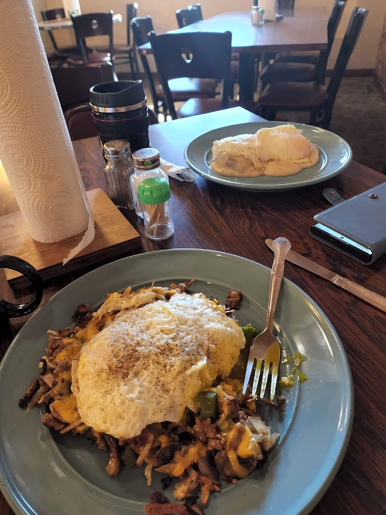 In town for a Hockey Tournament and up early while the rest sleep....Found this place....Best Breakfast Skillet (Loaded Hashbrowns) I've ever had....Sheila the owner was so friendly....Beautiful old building nicely remodeled and Super Clean....Will be back