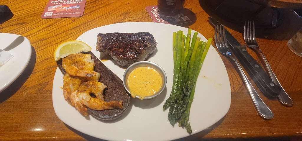 The steak was cooked perfectly and the asparagus was cooked just right and seasoned well. Shrimp was delicious and cooked to perfection!