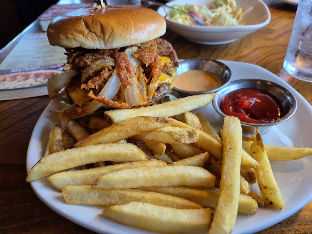 Was very excited to try out the blooming onion but it wasn't that good plus the lemonade drink is toooooooo sweet. Very clean and friendly/professional staff.