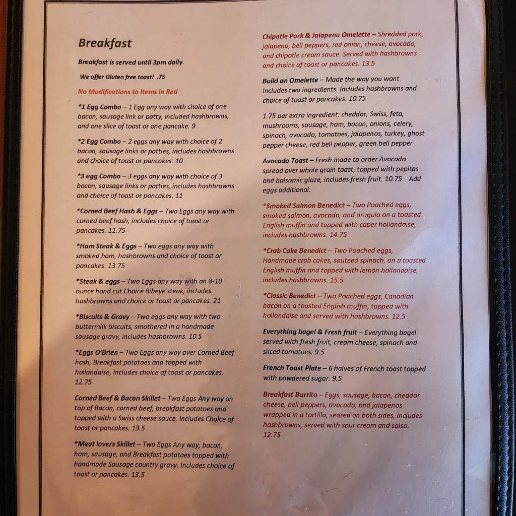 Really great breakfast in not such a really great facility. Could use some clean up, repair the women's bathroom, and redecorate a bit. But again, the food was good and priced fairly.