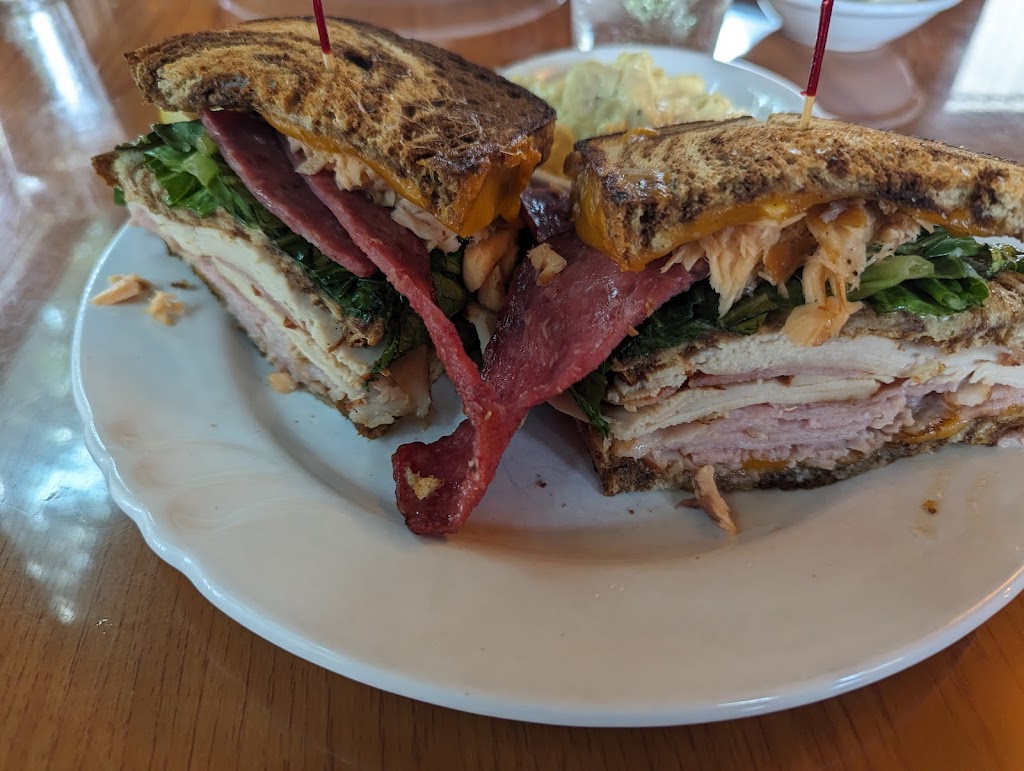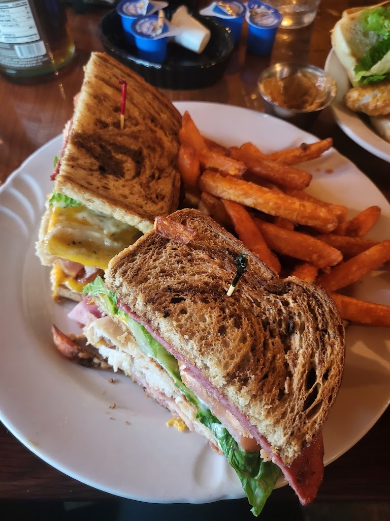 I had a smoked salmon and bacon club for lunch. The salmon is delightfully tender and slightly smoky. I also enjoyed the sweet potato fries. I could only finish half of the sandwich. I wanted to eat all of it.