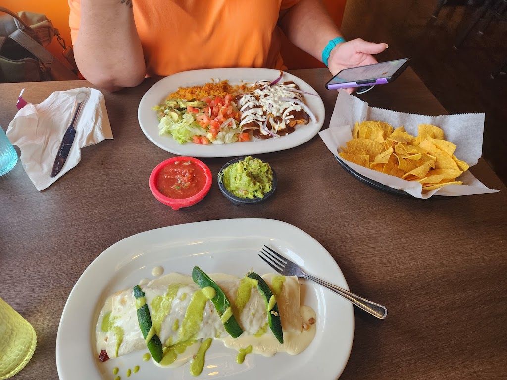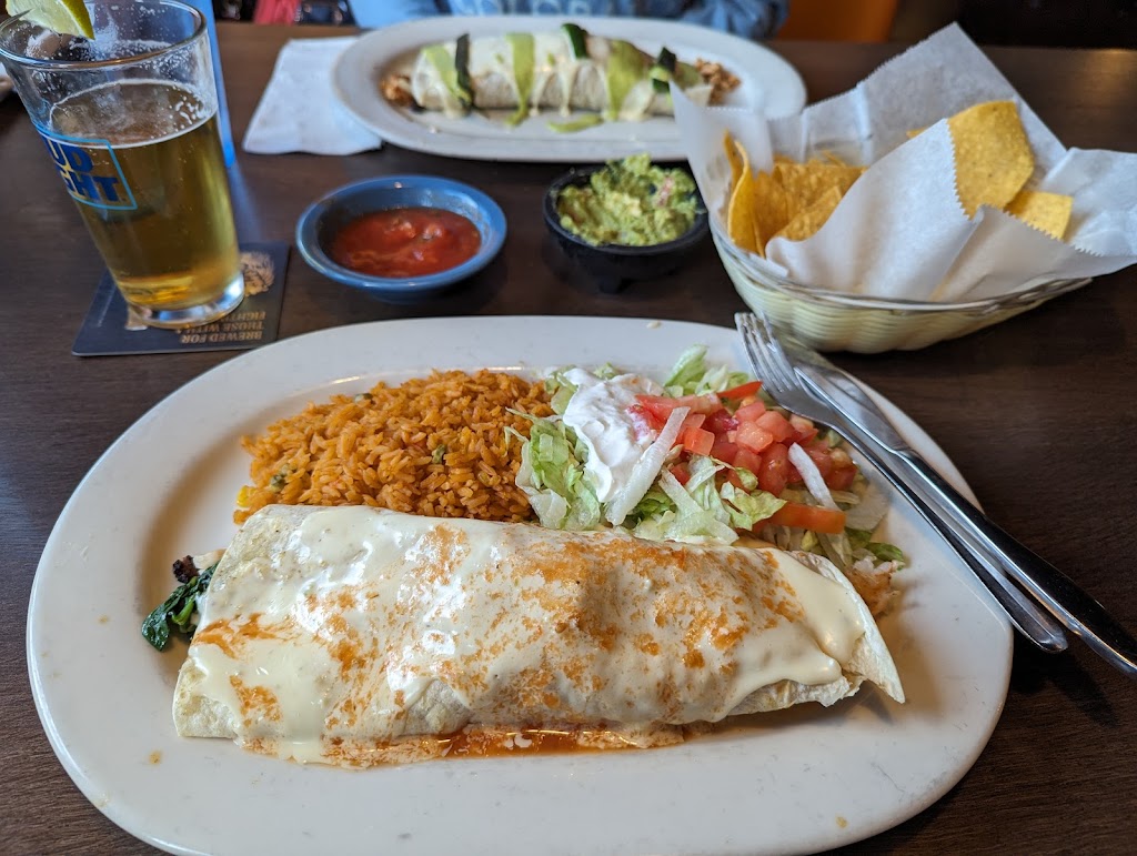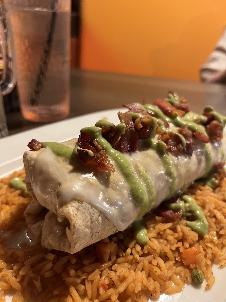 The inviting ambiance of the restaurant is one of its biggest draws, creating a lively and visually appealing environment suitable for both casual meals and larger celebrations. During my visit, I opted for a beef chimichanga with guacamole on the side. The guacamole stood out for its chunkiness and freshness, indicative of the high-quality ingredients used. While the meal was enjoyable, it fell slightly short when compared to other local dining experiences, particularly in terms of culinary excellence. Additionally, the chips left something to be desired, being thick, hard, and served at room temperature.