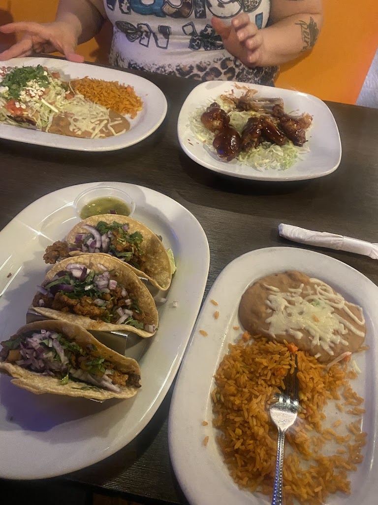 The street tacos were so flavorful. Pastor is what I had and you could taste pineapple in every bite. Rice was not very good though.