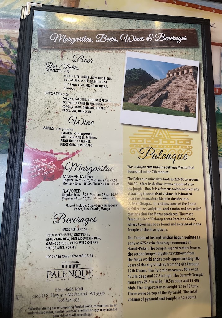 Since 2014, Palenque Mexican Bar & Grill has been delighting the McFarland, WI community with authentic Mexican cuisine. Specializing in catering, we offer a delectable selection of house specials, traditional favorites, and mouth-watering desserts. Dedicated to providing an exceptional dining experience, we warmly invite the McFarland community and surrounding areas to join us and savor our delicious dishes today!
