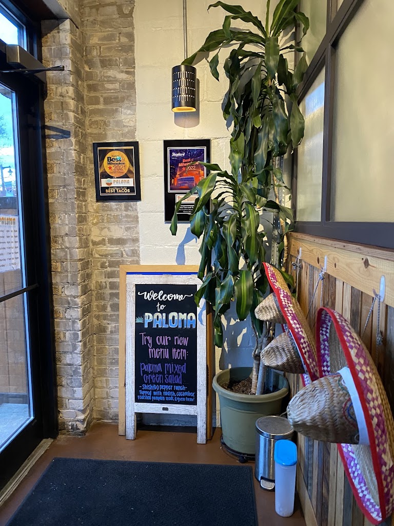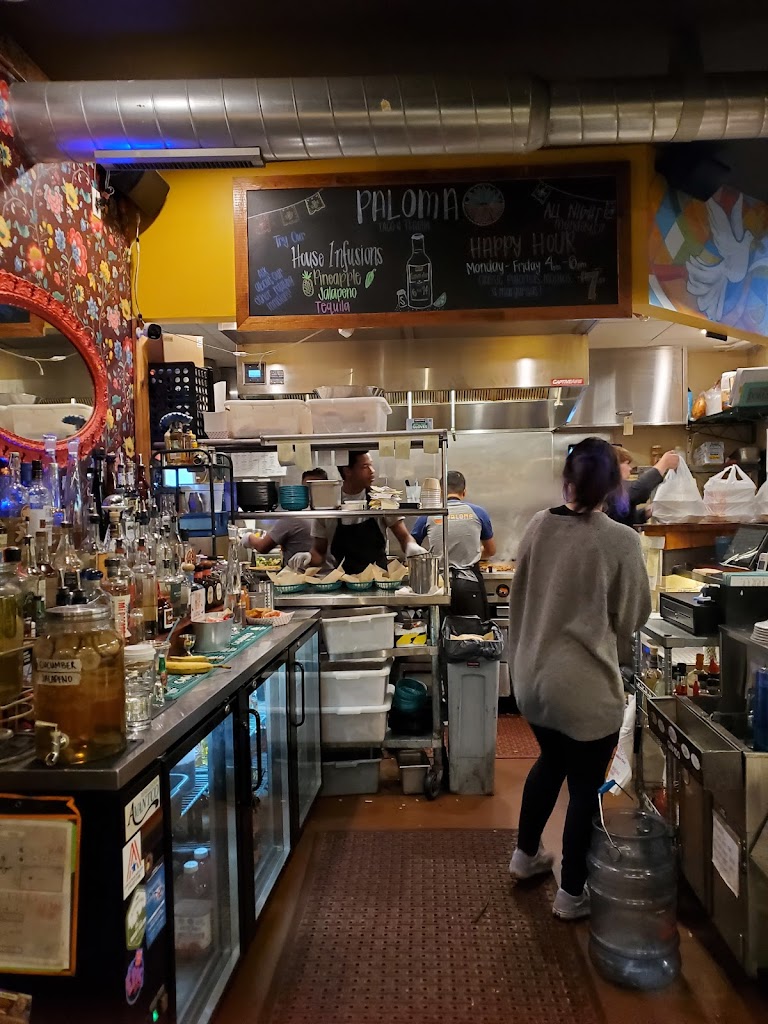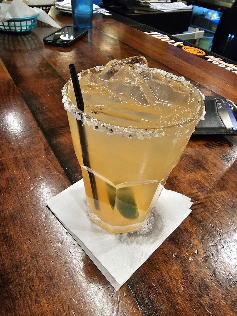 I have wanted to try Paloma for a while now, and finally got the chance to stop in! For a weekday night, it was busy! We waited about 20 minutes for a seat at the bar area, but we did get served drinks while we waited. We got their margarita to start while we waited.