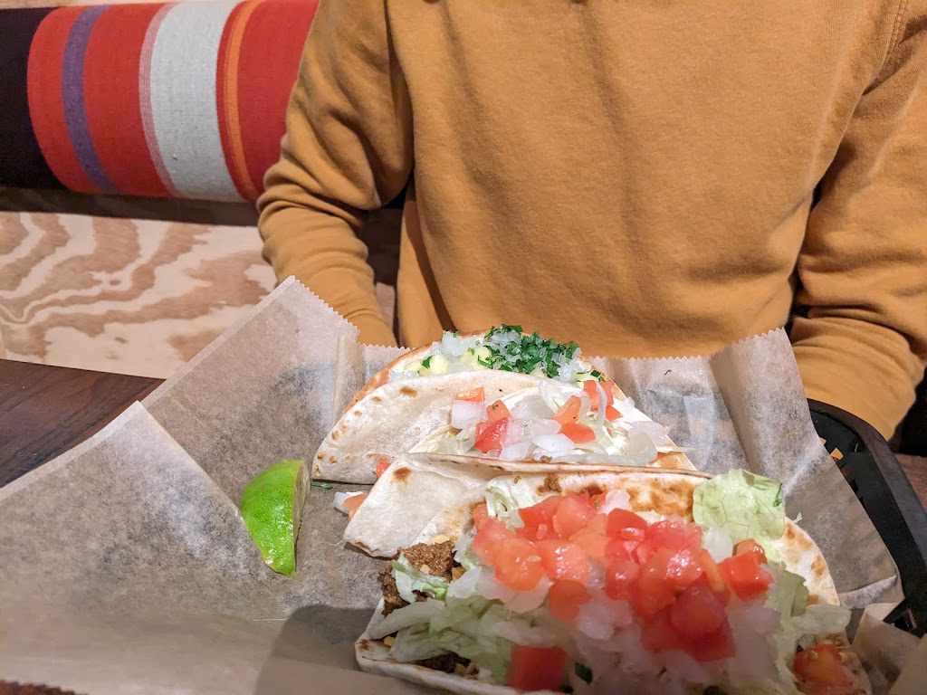 Get their Brussel Sprout queso crunch tacos. Trust me, you won't miss the meat lol. And I'm not vegetarian. But I love them. The staff is friendly, especially my long time wait staff.
