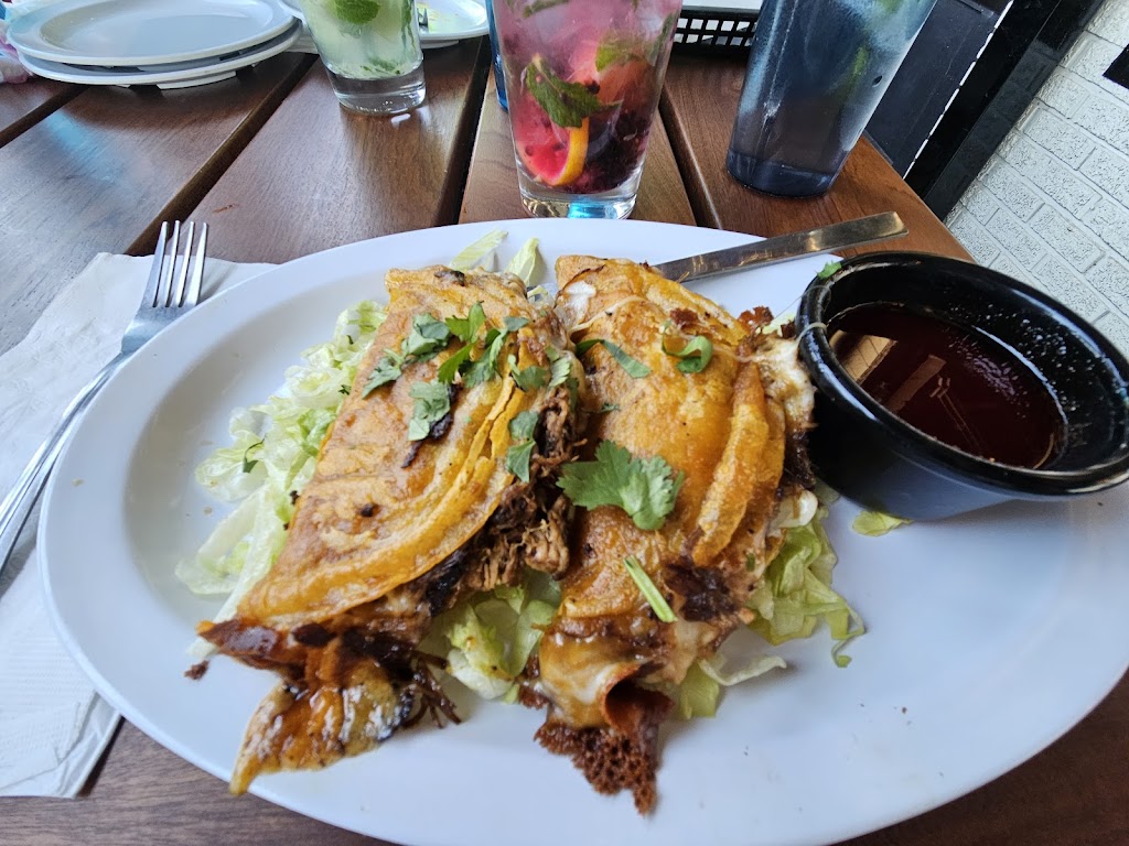 So delicious. Cozy little spot. We love their taco pockets and margs!
