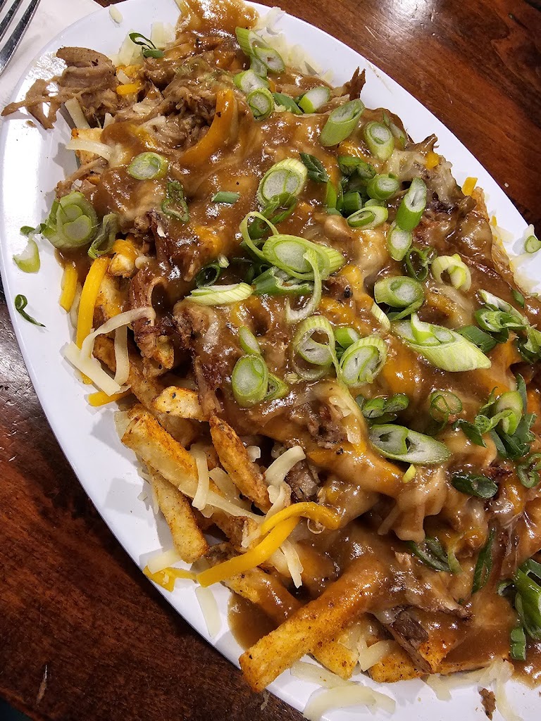 The food was tasty if very greasy, think the sort of gut bomb you want while drinking. Lots of vegan options, and they will accommodate lactose issues. The kitchen is slow. Be prepared.
