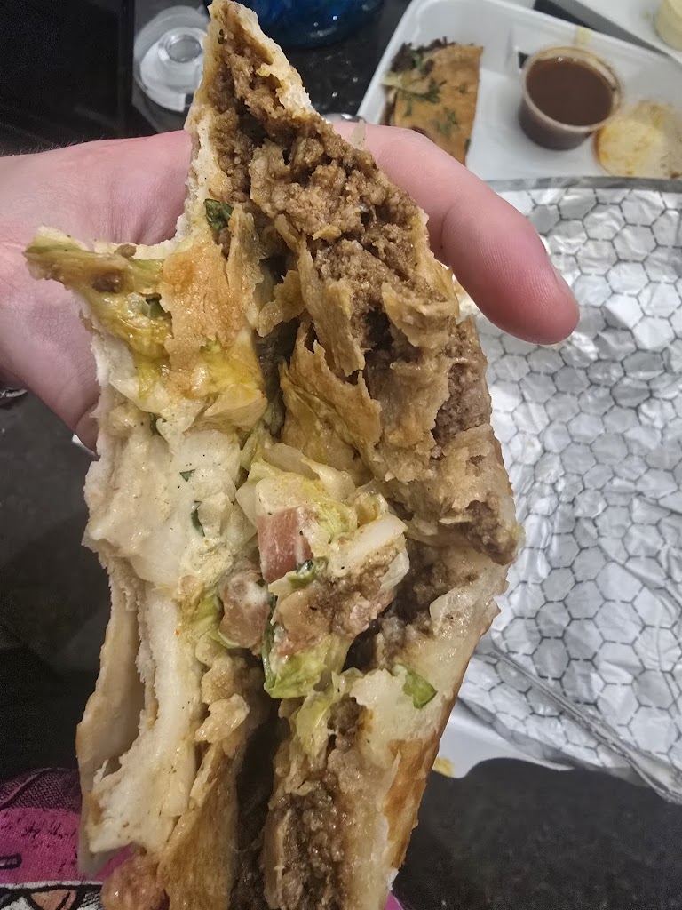 This place charged me extra for certain options for their taco pocket. They wanted extra for guacamole, or black beans etc. As you can see in this photo, theres no black beans, no guacamole, no queso, disappointing to say the least.