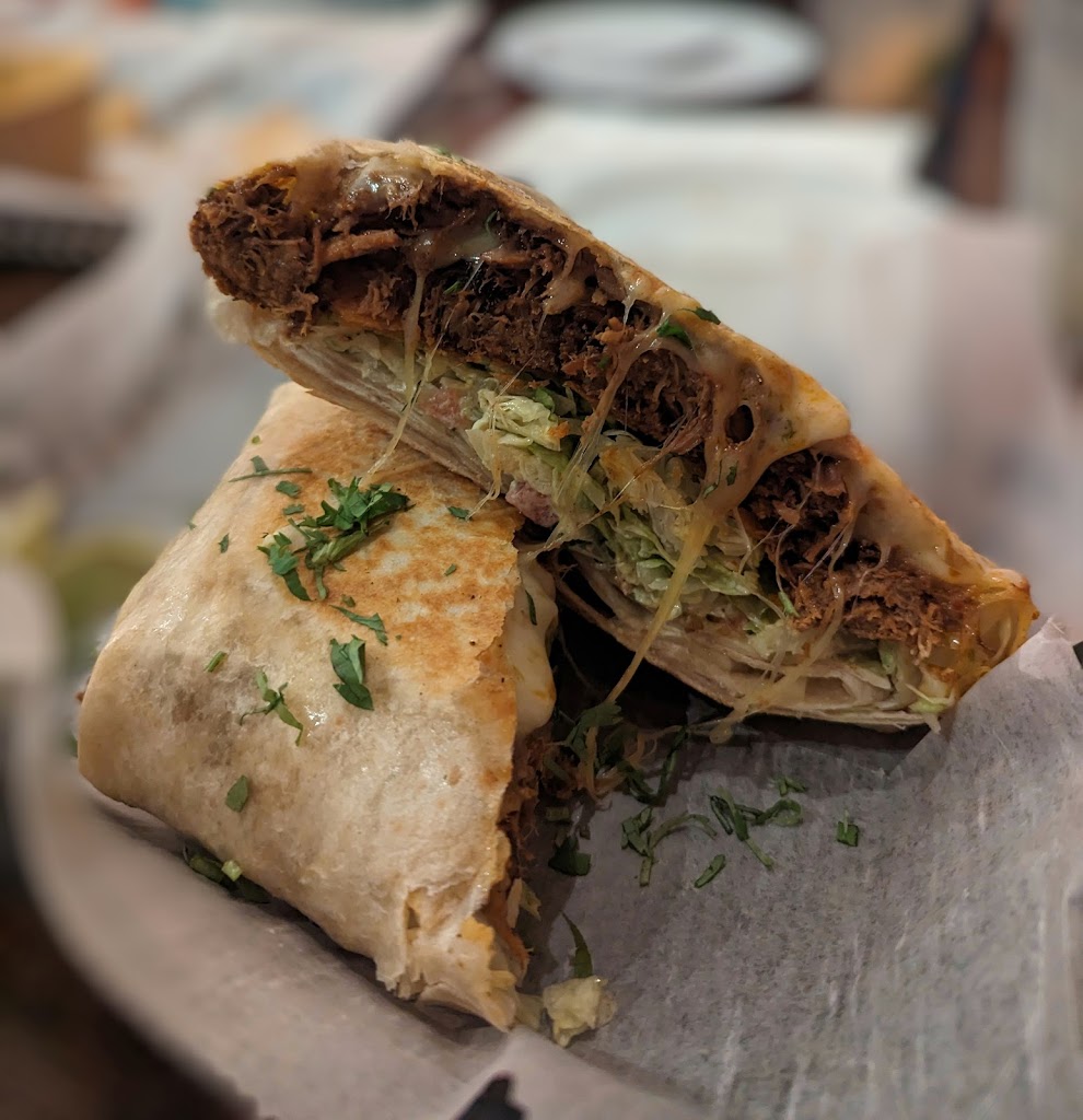 Such delicious food! I've ordered carryout before, but this was the first time I was able to get a seat — it was nice to take in the colorful decor and enjoy the ambiance with my friend over my lunch break. (The music was a tad loud, so just be aware that you and your tablemates may struggle to hear each other.) Confession: I actually always get the same thing here, the chorizo taco pocket. It is aaaaabsolute fire, I tell ya. My friend even got the same damn thing cuz we didn't want to share haha. It's super cheezy but assembled really well so the filling doesn't ooze out and it's not as messy as it appears on first glance. It also reheats really well as leftovers, so two meals in one, baby 🤌 The chips n salsa aren't bad, either, though the amount of chips is a little sparse. Maybe someday I'll try something else, but for now I'm still dreaming of my next pocket experience.
