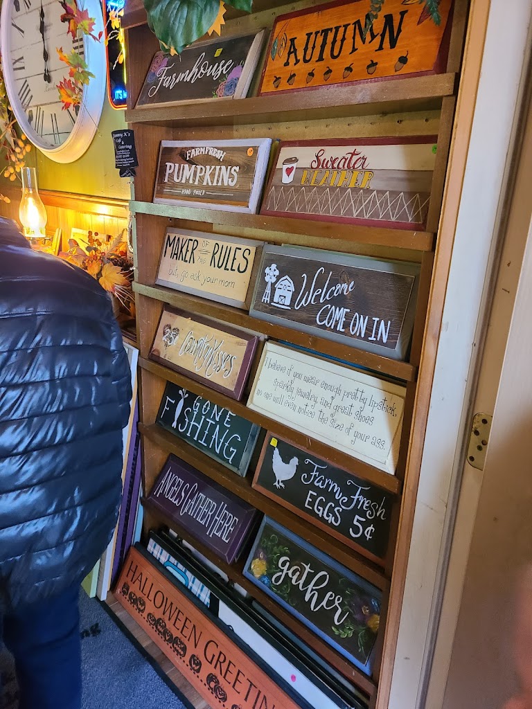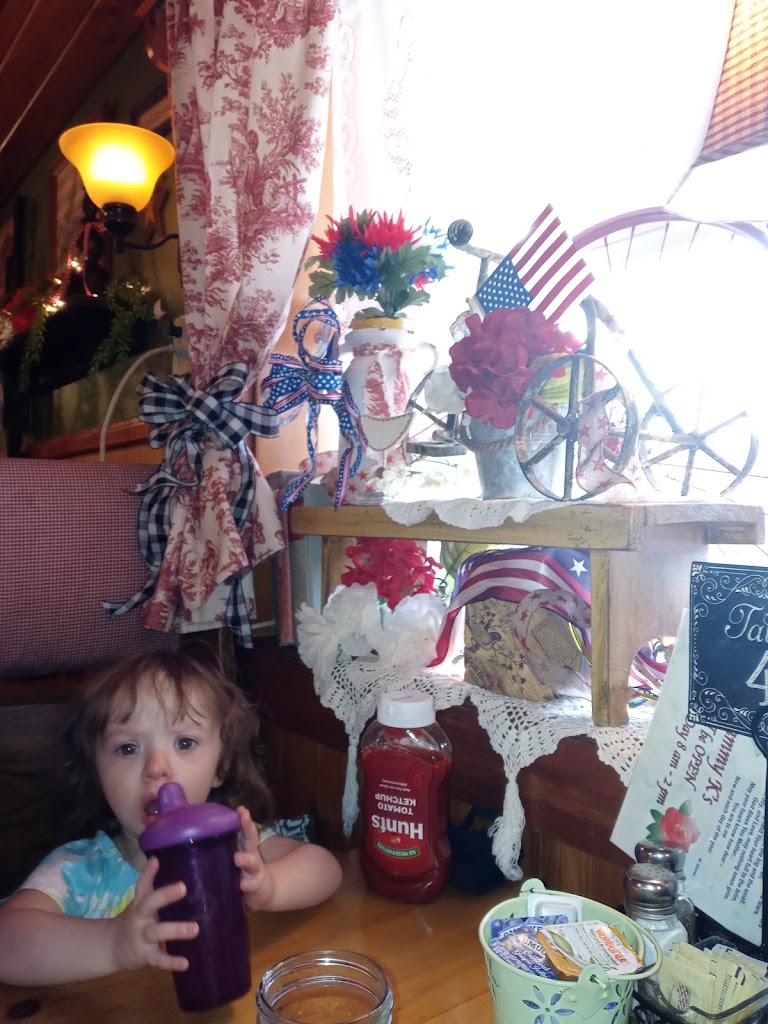 Had oatmeal, hubby had omelet and hash browns, both good, will go back again, cute knick knacks, homemade goodies