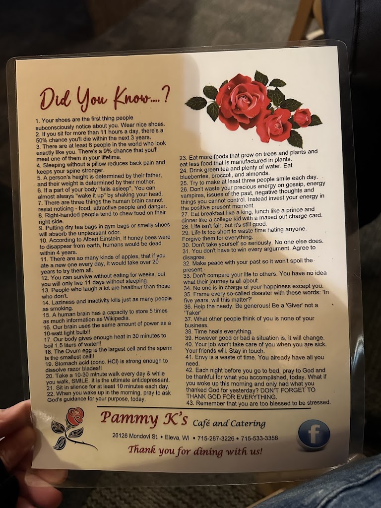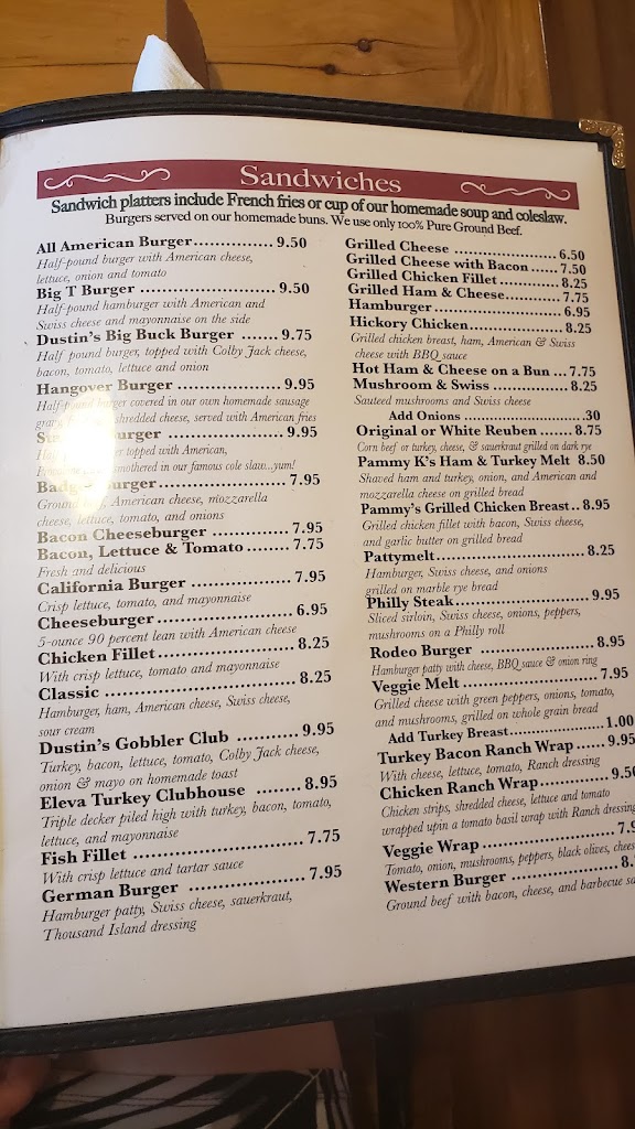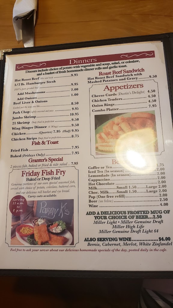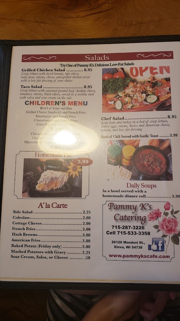 For a small town of Eleva. Pammy K's is a very excellent restaurant. The owner's and staff are very friendly and welcoming. The food is excellent and won't ever have a bad meal there as they believe in the quality of their food. In many respects it is a restaurant of choice and highly recommend it.
