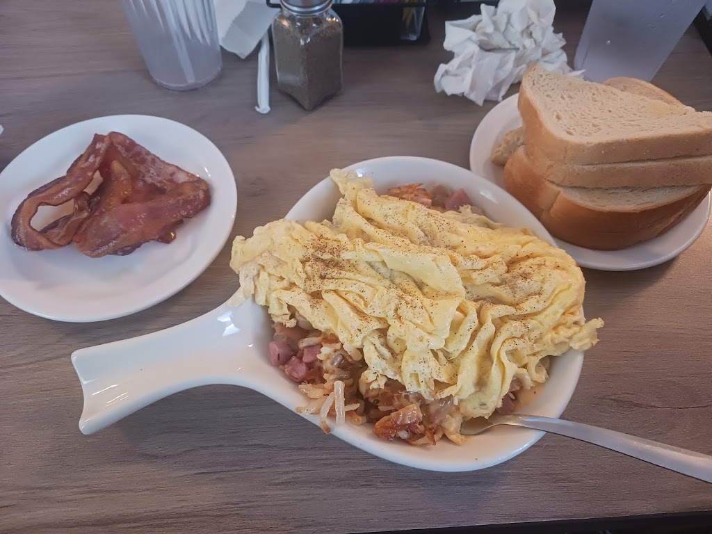 Stopped in for the first time and ordered a build your own skillet and the special of blueberry pancakes with lemon glaze. Hubby didn't even need to put syrup on the pancakes. I had a couple bites and agreed with him they were delicious. My skillet was fabulous too. Will definitely stop again when we are in the area.