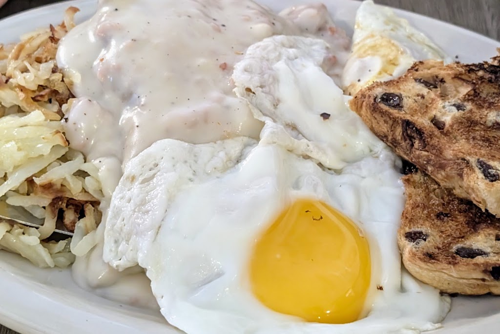 Great place to stop for breakfast if you're in the Wisconsin Rapids area. Busy with locals, which is always a great sign! We were seated quickly even though they looked pretty busy. Staff was wonderful the whole time. Food was exactly what you'd hope for, delicious, made from scratch, proper American breakfast food. The biscuits and gravy, hash browns with gravy and eggs and the country fried steak, were all perfect. Their homemade breads are a notch above anything you get in most restaurants. Even the coffee was pretty good! Plenty of parking. Highly recommend this place.