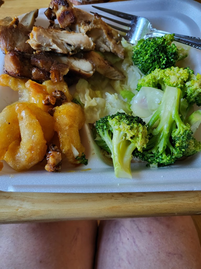 The “Bigger Plate” is a food hack. 3 different meats and a big pile of rice for $12. That orange chicken is fantastic, paired with the sesame chicken. Big pile of awesome.
