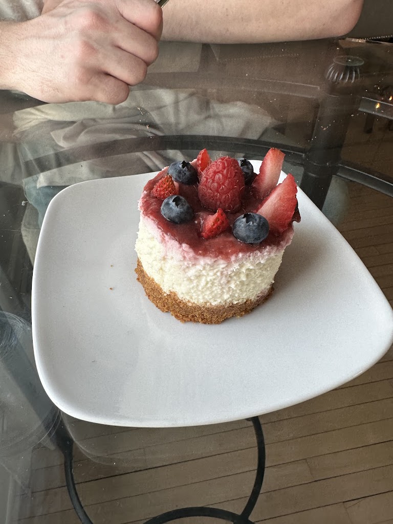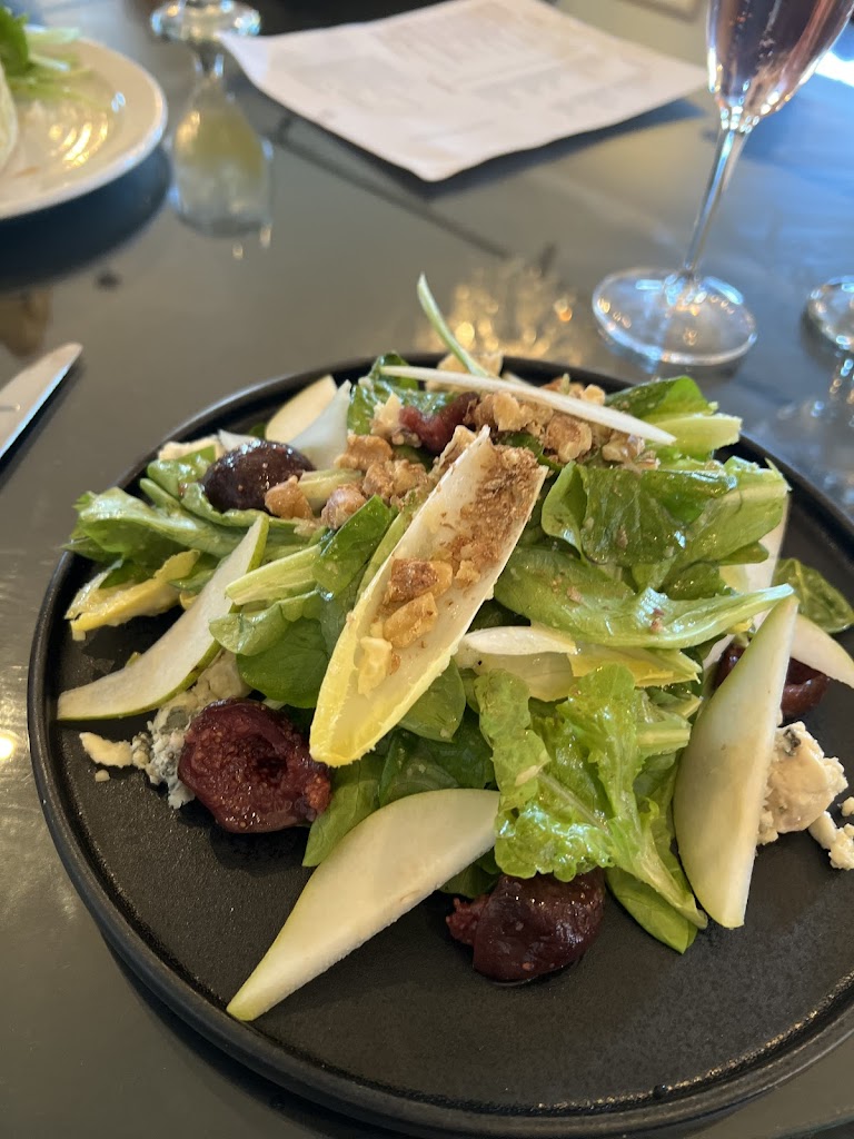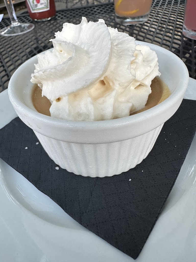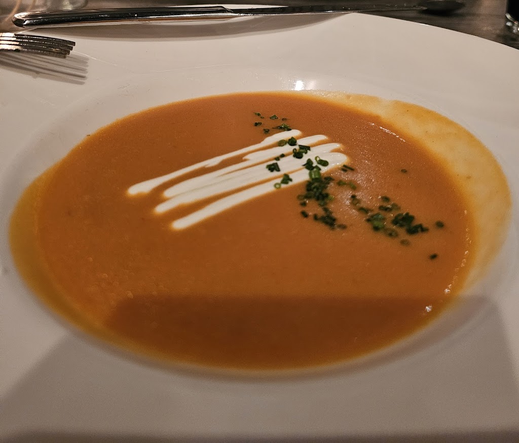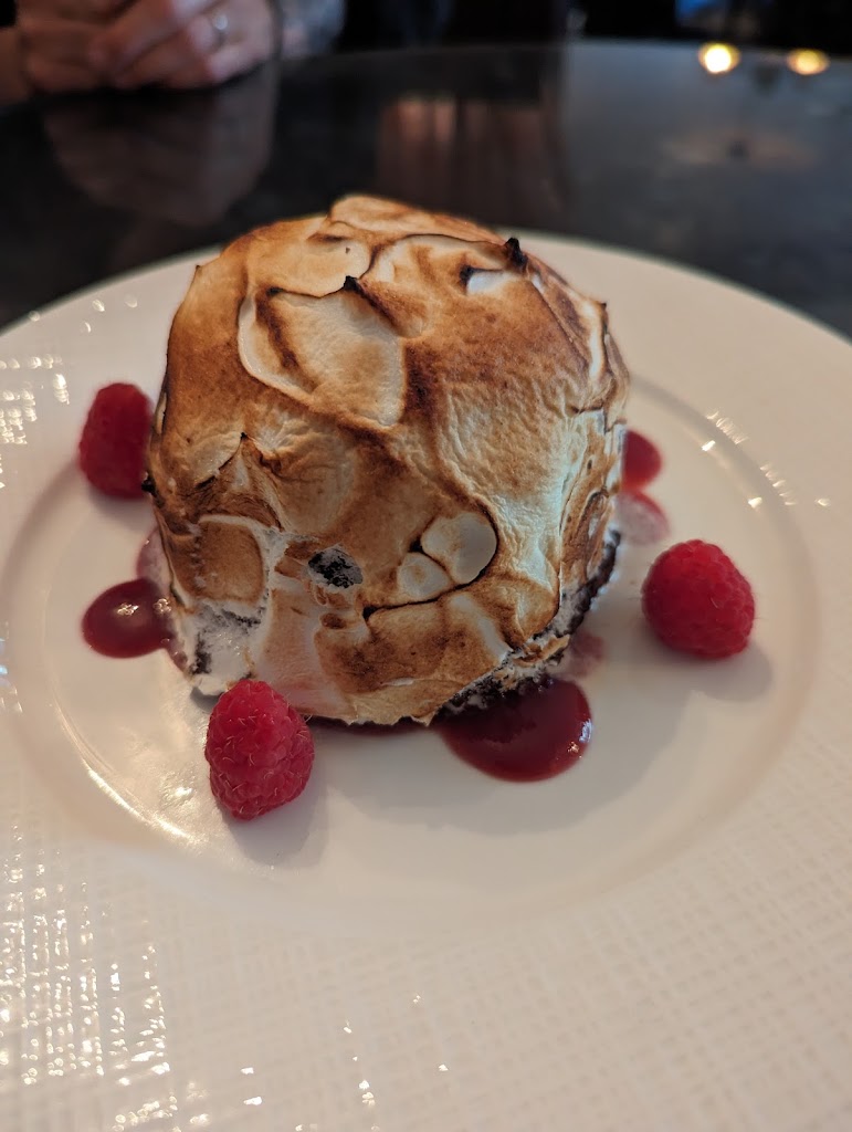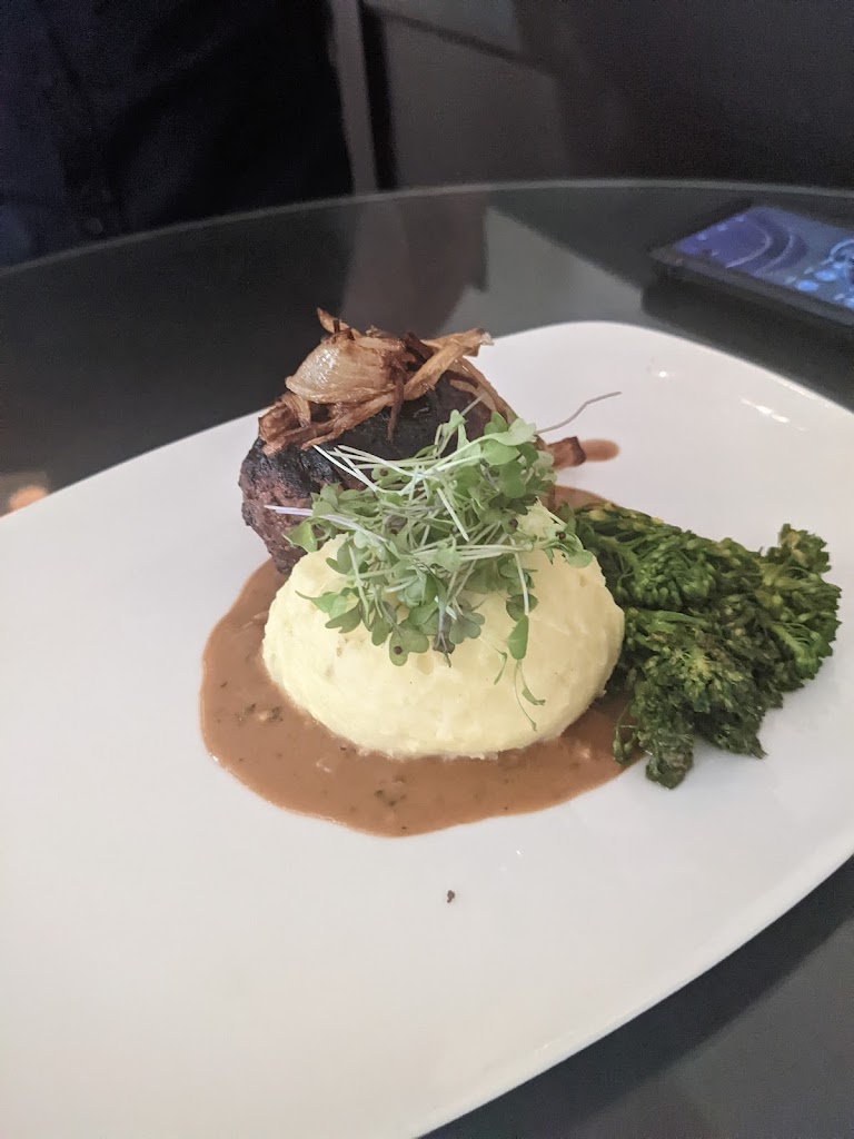 Our main course was the prime rib. We were not asked how we wanted it served, which in hindsight sight, should have been the warning. It was served on top of a very salty bone marrow sauce. And the steak was very heavily seasoned as well. In general the flavor was good just very salty. We did inform the host/waiter and he thanked us for telling him. 🤷🏻♂️ In general good meat should not have white tendons through the mid section of the cut. I’m not sure if these were cuts from older beef or we just had poor luck. It was not like a prime rib that I recall from visiting a Chicago chop house, a Mahogany’s or say, Johnny’s in Madison.