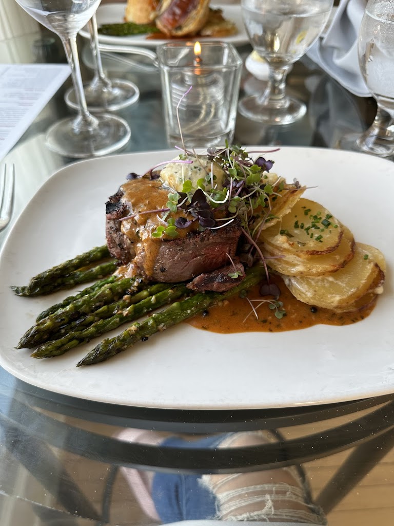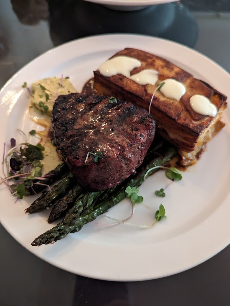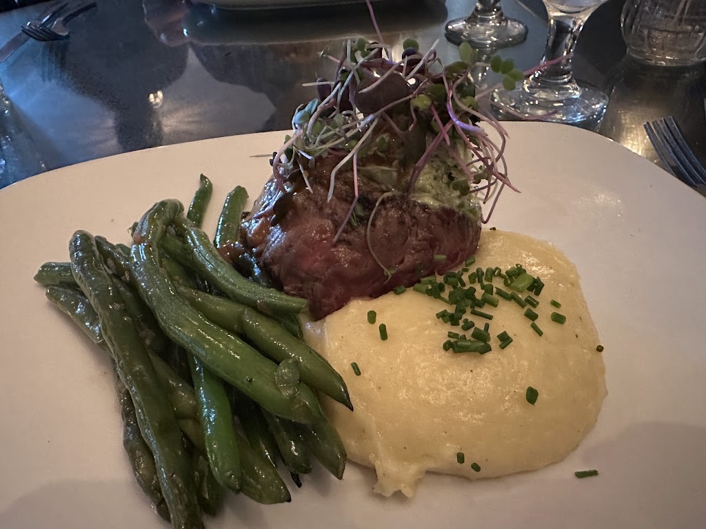 We had a wonderful dinner service and Sunday brunch. The service was perfection, it's hard for establishments to get the balance of attentiveness correctly, the service was impeccable for both meals. The food was delicious with generous portions and cooked exactly as ordered. We had the whipped goat cheese appetizer, filet mignon, prime rib hash, and a strip steak with fries between both meals. All were spectacular, cute restaurant, excellent experiences.