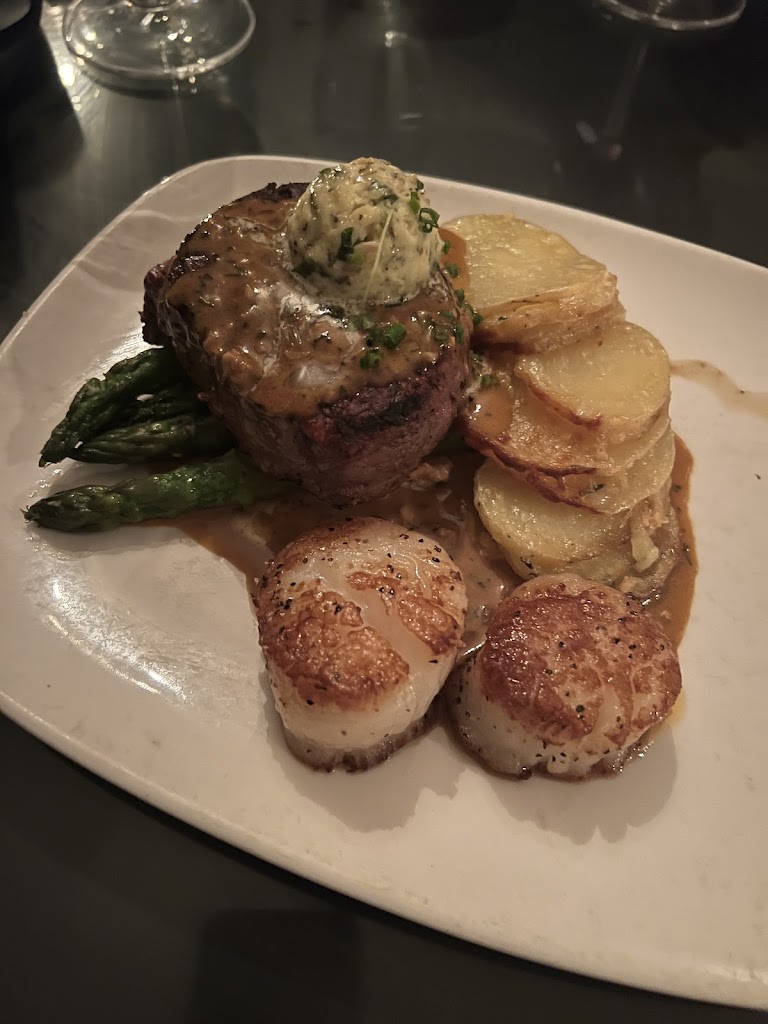 Amazing food! We had the scallops and the filet as well as the creme brulee and it was all so good! Highly recommend!