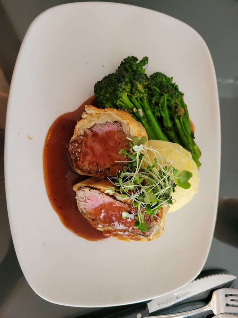 Best beef Wellington I've ever had. There was live music that was a bit too loud. Overall, one of the best restaurant experiences I've had in a long time. Excellent for special occasions, family gatherings, and dates. Top notch!