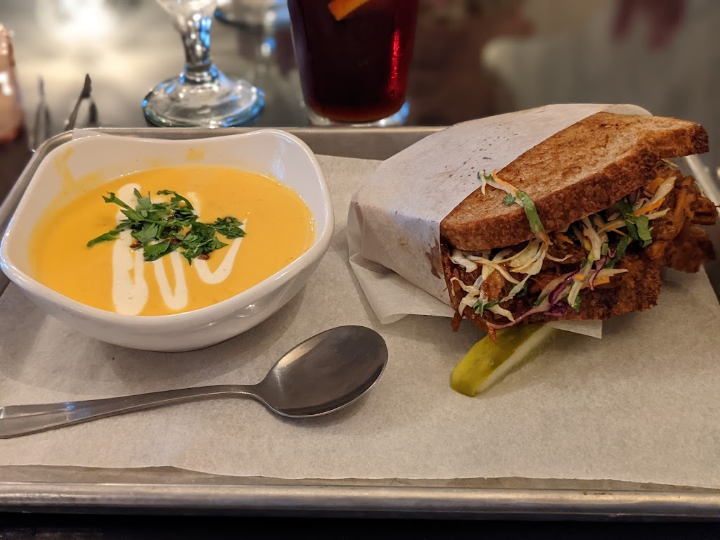 Great food and drinks we both really like the squash soup special. Their avocado burger was a bit messy to eat but was flavorful. We went for lunch but we want to try their brunch and dinner options. The schoolhouse is a cozy venue and the staff was very attentive.
