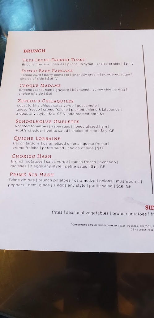 We met our daughter and family here for brunch and we were delighted. It was a beautiful day and we enjoyed the patio. They are on the top of their game with presentation of each dish, friendliness of the staff, and variety of the menu. The mushroom pate was superb. We had the added bonus of the Sunday farmer’s market with live music and browsing the shops down the street. To complete the day, strawberry picking is about 5 miles away. The area is truly worth a visit starting with a stop at the Schoolhouse Bistro.