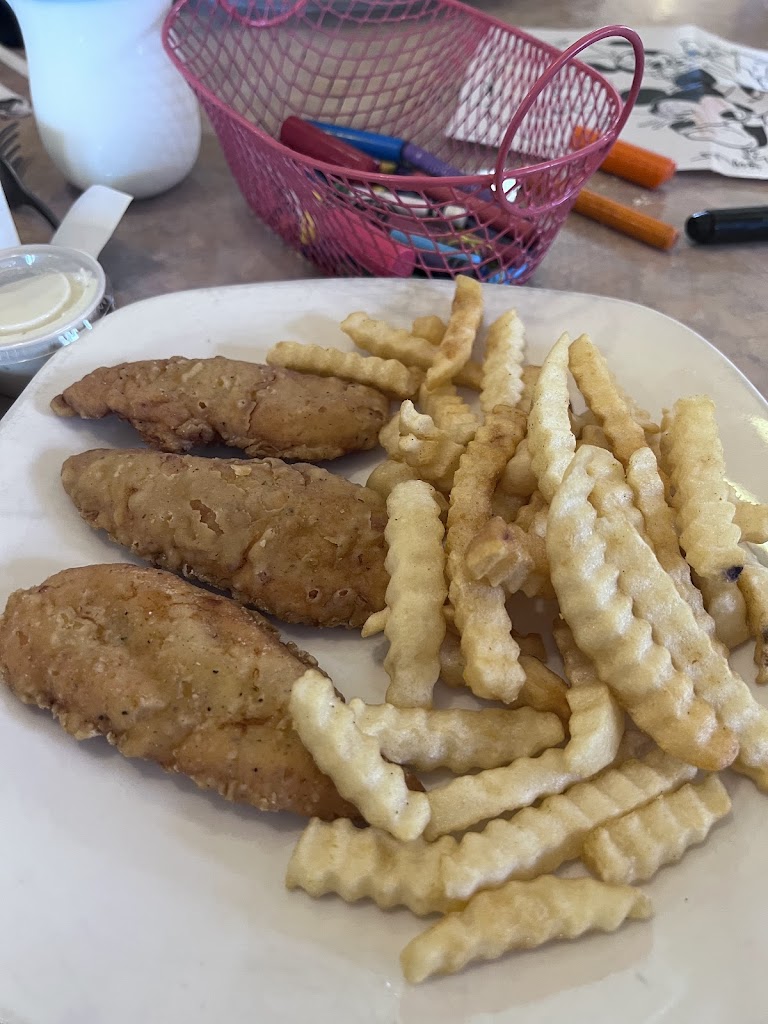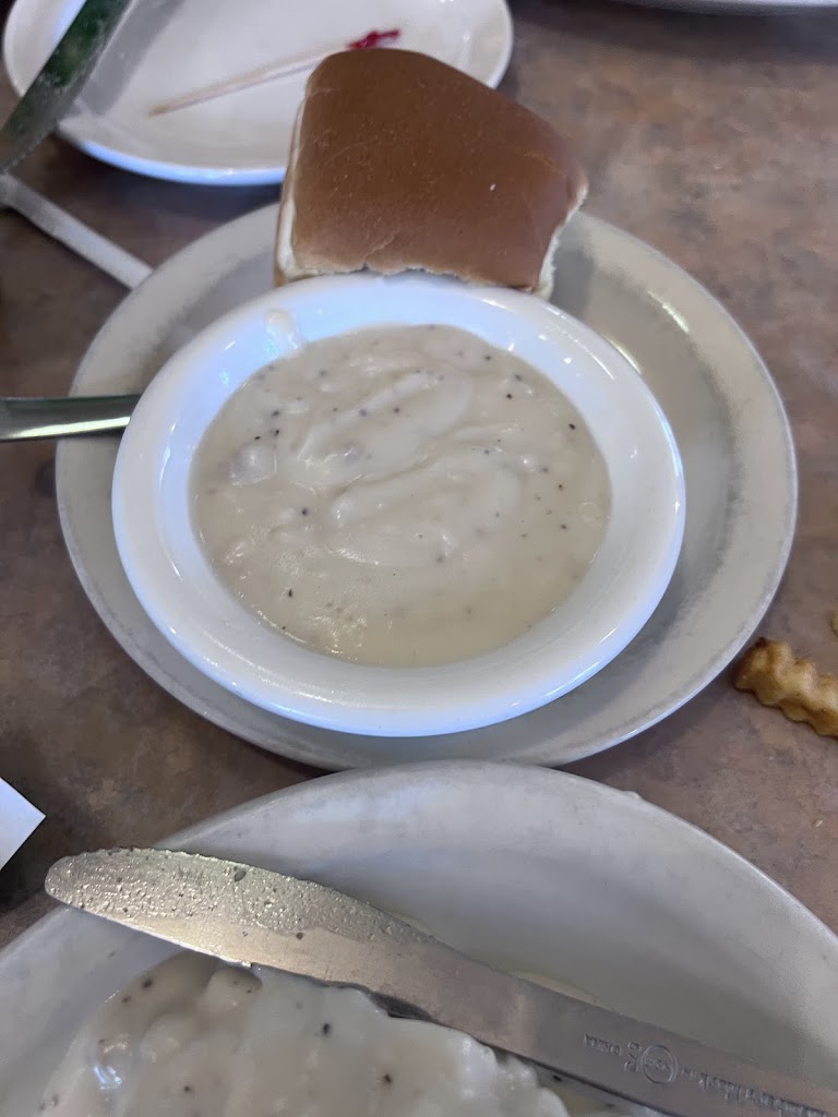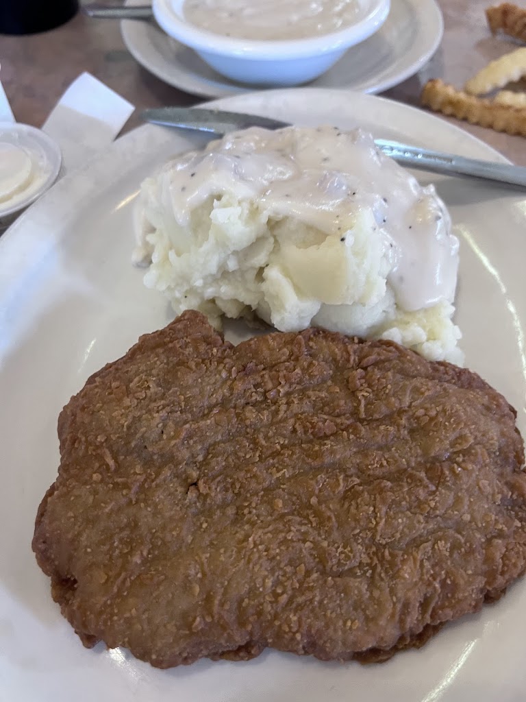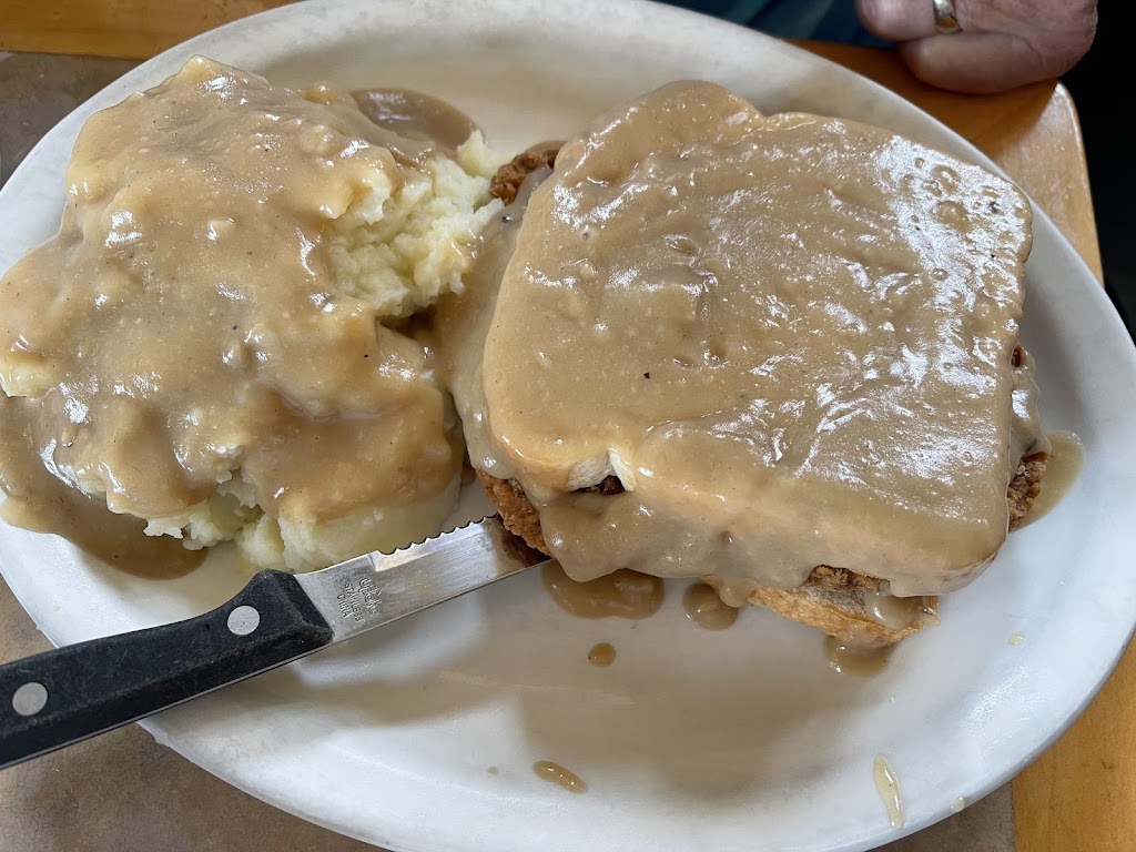 Saw this place had a high star rating and figured we’d give it a try. We like to try diners! Typical old school diner. Has a big menu open 6-3. Has a senior menu. We went at about 11:30 on a Saturday and there were very few people in there. That should have been are first clue. Server was friendly and food came out quick. That’s why I’m giving 2 stars. The restaurant is not clean and the tables felt gross. Not sure if there was something on them or the protective coating is coming off, either way it’s gross. We started with French Onion soup. It cost $1.99 extra to add croutons and baked cheese to it. The soup was not good. The cheese was some sort of melted white cheese topped with Parmesan out of a can, also not good. We had a kids meal that was $8.99 for fries and 3 chicken tenders a little pricey but tasted ok. Husband had the French Dip. He said it was very plain, no flavor but the au jus was ok and fries were good. I had the country fried steak dinner. The country fried steak was your typical piece of frozen breaded country fried steak, it was fine. The country gravy was horrible, no flavor at all! The mashed potatoes were cold so I did not eat them. We did not complain. We paid our $52 bill, left a tip and went on our merry way. We will not be back.