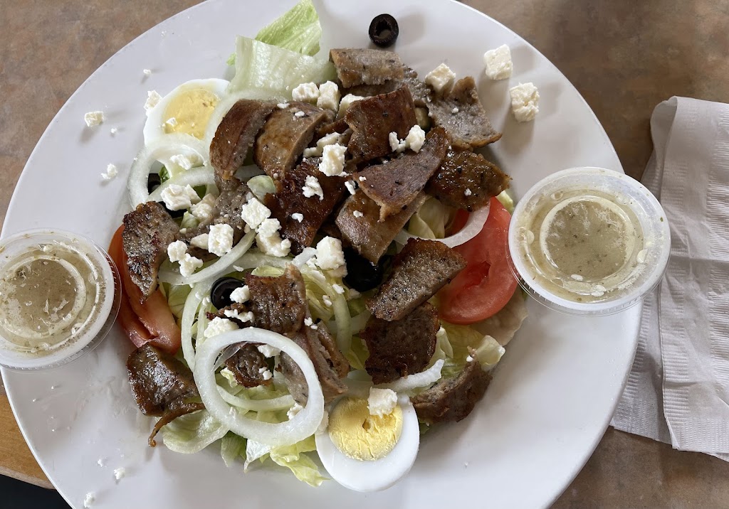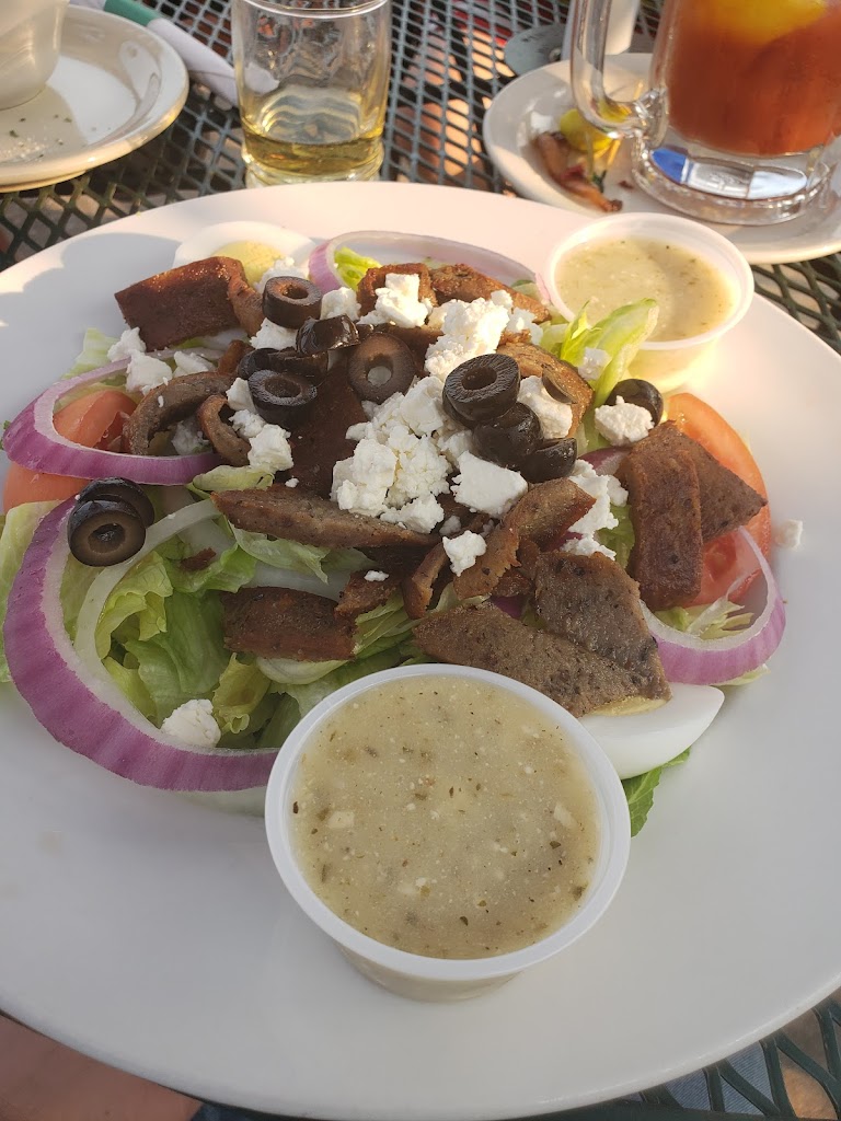 Gyro was excellent. Chicken salad wrap was okay. Would have liked a bit more than mayo...some kick or other flavor. Service was excellent. Bathrooms were clean. Table was a bit sticky, but I believe it was clean...might have been the finish wearing off.