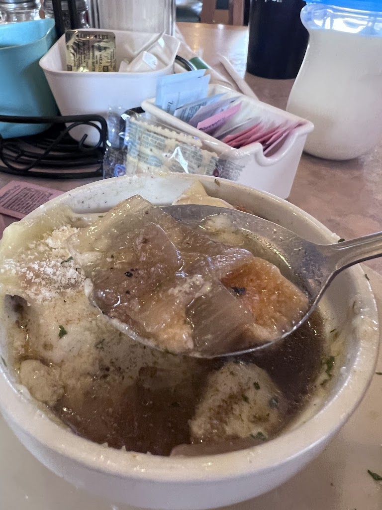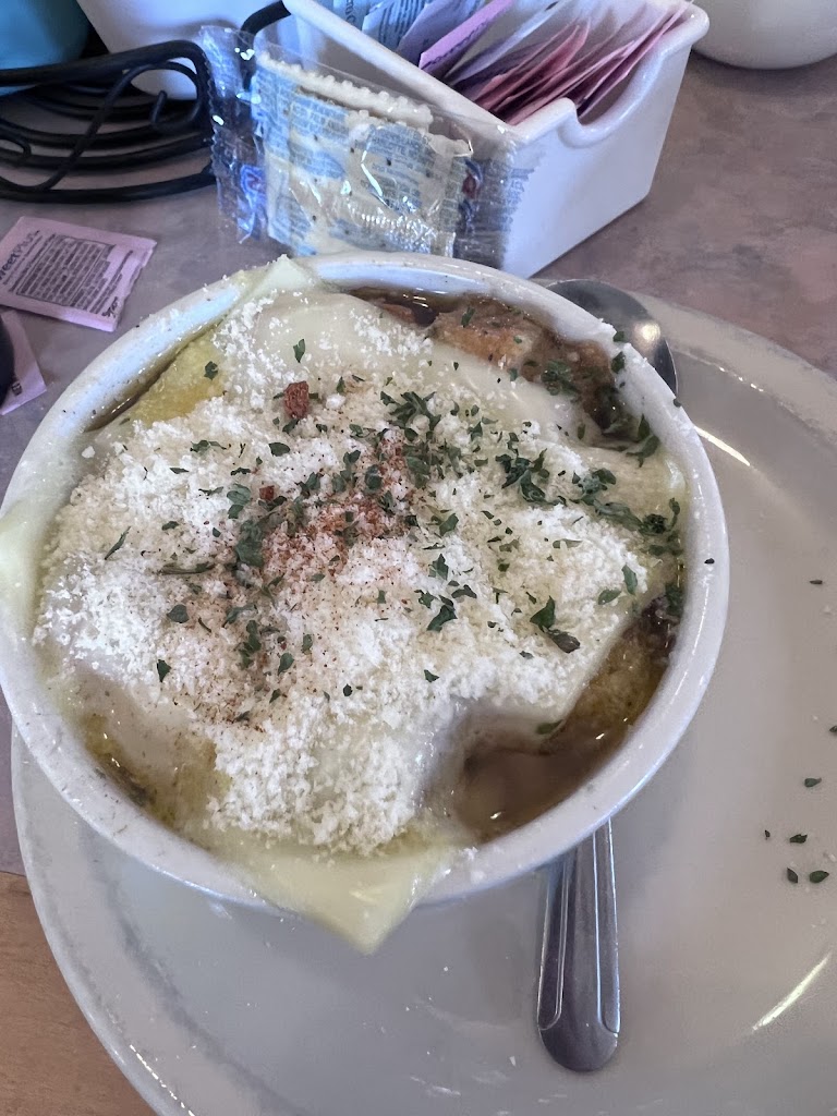 1st we ordered the bake French onion soup and it comes out and it has bread no croutons