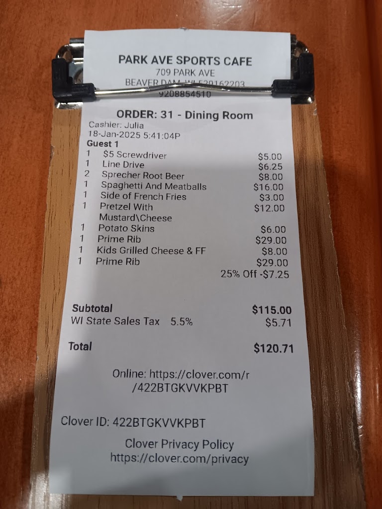 Food is reasonably priced especially for the quality and quantity. I highly recommend this place to anybody in Beaver Dam or surrounding areas.
