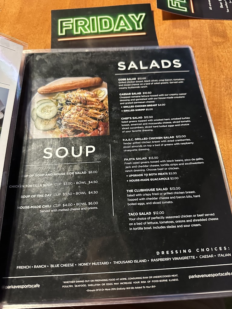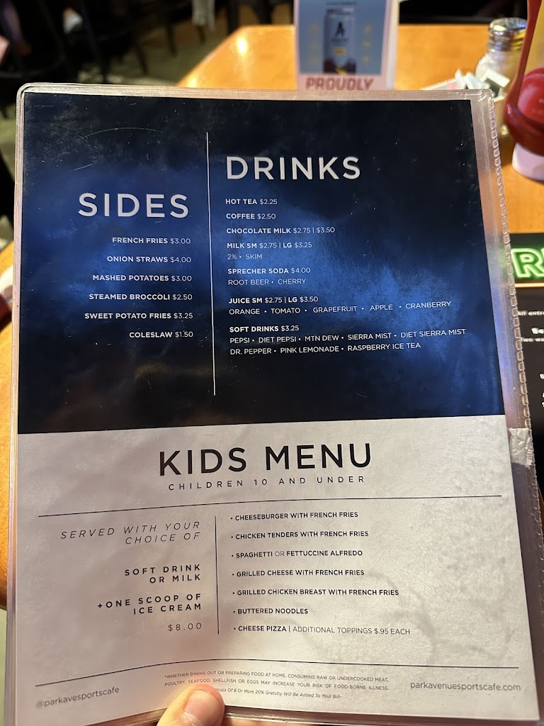 Had the Blacksmith’s Breakfast Special here and it was absolutely amazing—perfectly cooked and full of flavor. The atmosphere was great and Maddy provided excellent service. I’ll definitely be coming back to Park Ave Sports Café.