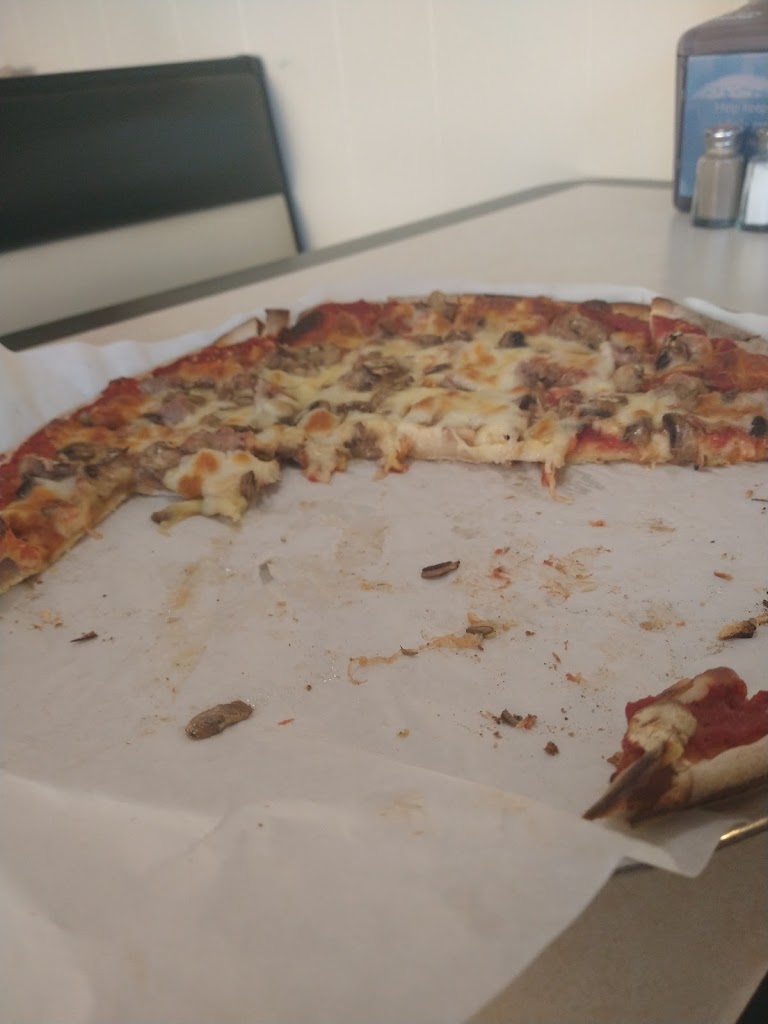 Our waitress, can't remember her name, was awesome as always. She's the mom of another waitress from there. She always busts her butt to accommodate us and everyone else. She is such a sweetheart. She's the reason, well plus the awesome pizza, my son and I continue to go back. Even my cousin from the u.p. comes to visit and wants to eat park plaza pizza. I do wish the crabby cook was nicer to her. He has no idea what a gem he has with her. If she isn't busy, she always shoots the shit with us!!!