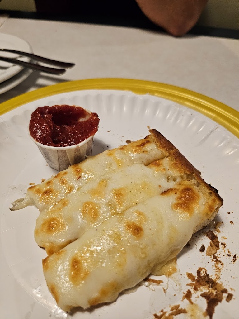 First time visit.. was greeted immediately by a fun sassy waitress…ordered garlic fries.. basic but the garlic cheese bread and thin crust pizza was phenomenal.. if your ever get a chance stop by here