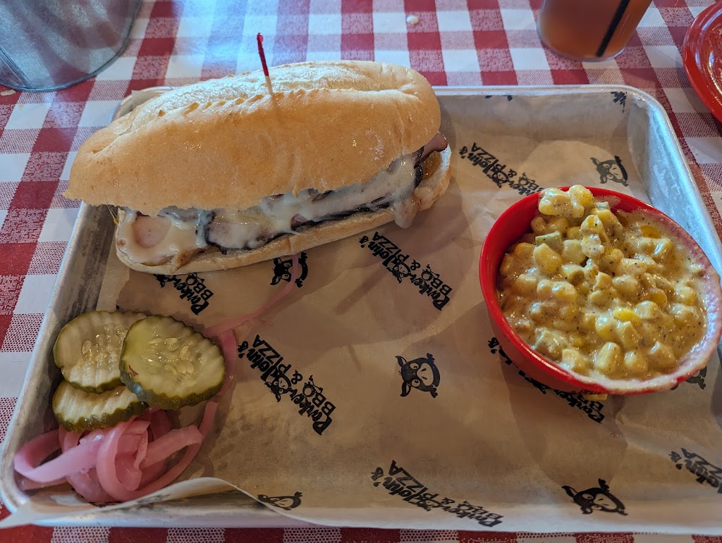 We loved our beef brisket and BBQ sandwiches. The ciabatta rolls are very good and hold up well without getting all squishy. I had the warm peanut butter cookie with ice cream - a wonderful treat!