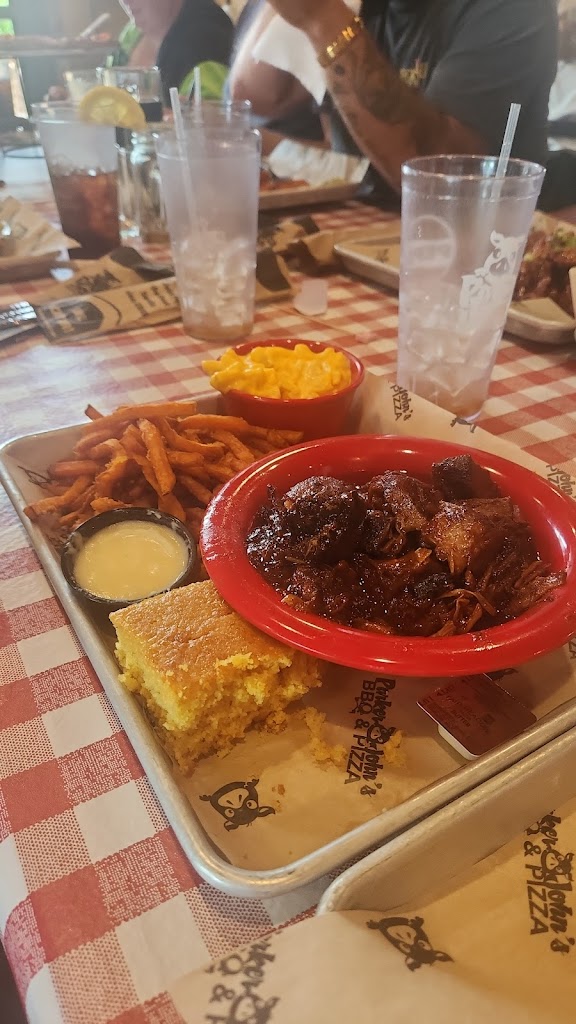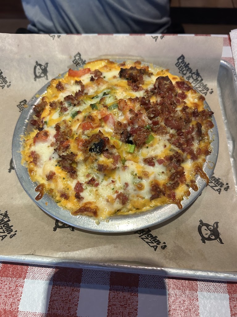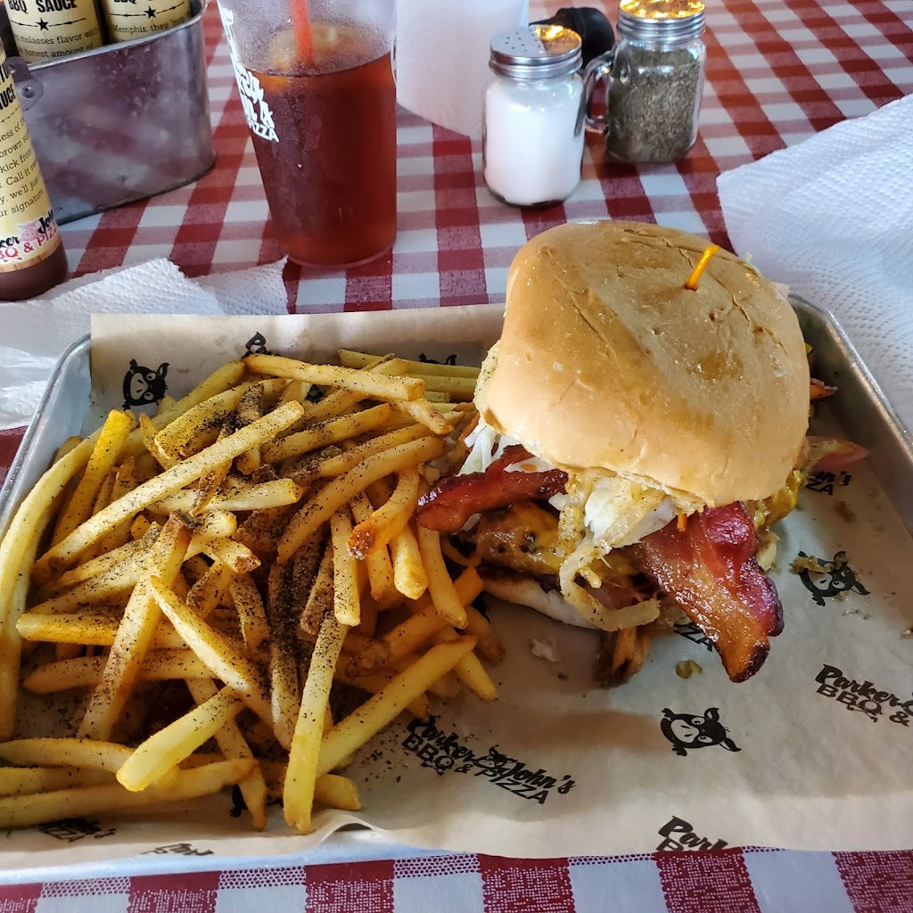 Parker John's is great for BBQ. Recently my wife and I went out to our local Parker John's. She had some BBQ and I had an itch for pizza, so I ordered a large supreme style pizza. The crust was definitely made in a factory somewhere. The toppings were skimpy, and the cost was as if it were from a boutique. I can honestly say that I have had better frozen pizza from the grocery store. Honestly disappointed.