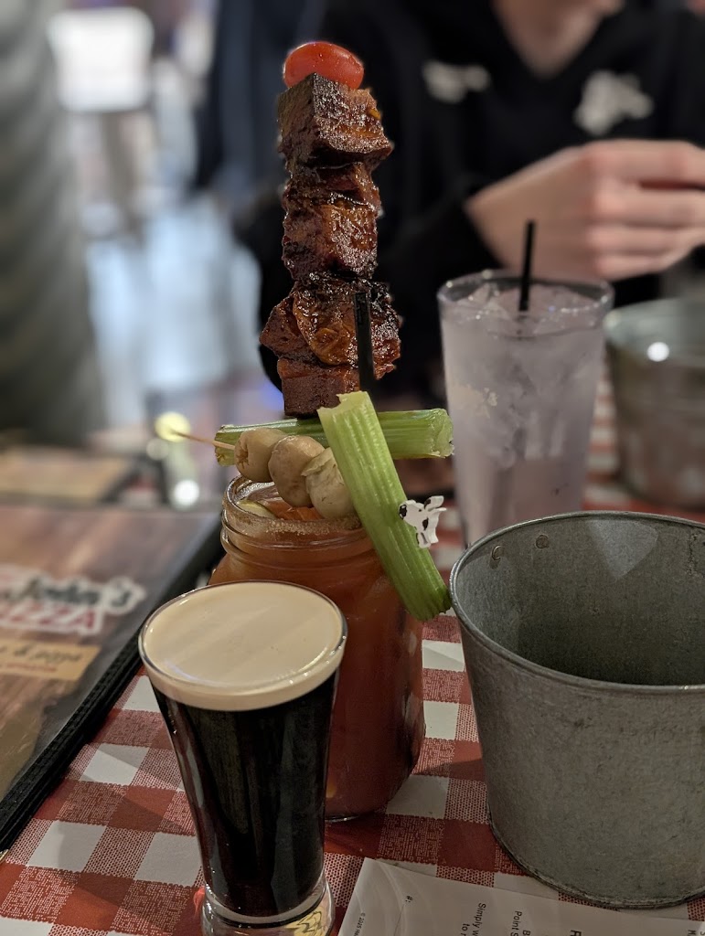 Our server was very pleasant. She made me aware of the happy hour going on at the bar so I could get 2 Not My Parker's Root Beer, which were delicious. My husband enjoyed his Bloody Mary & his Andouile Mac & Cheese. My kids liked the boneless wings & fries. They also enjoyed cracking peanuts at the table. The cheese curds & cauliflower wings were good, too.