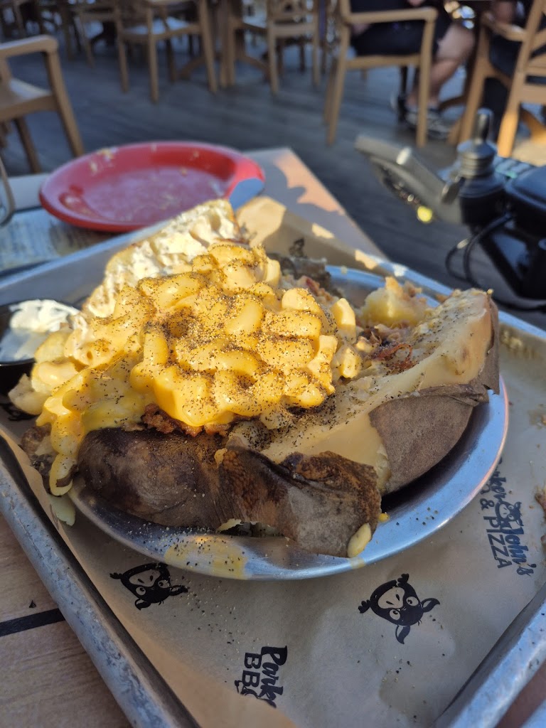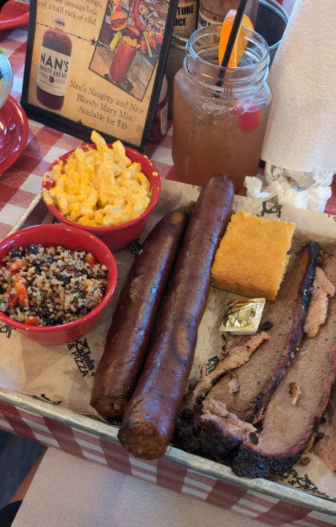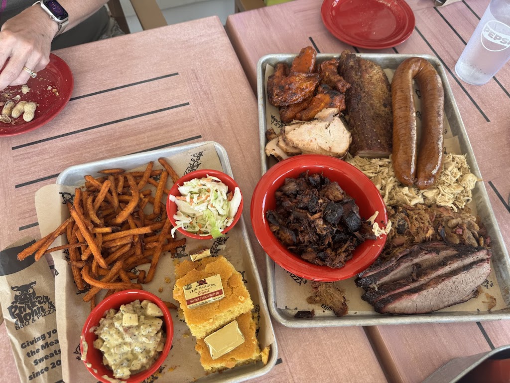 BBQ was what you'd expect. Being from southern Illinois Ive had a lot of smoked brisket and Parker wasn't unique but it it's not bad. The cornbread was great and they brought out frosting with the sweet potato fries which high key smacked. It was giving ✨ diabetes ✨ and I was here for it. Tried the pizza as well, Italian sausage was spicier than my preference but all in all a good experience. Beautiful view and service was great.