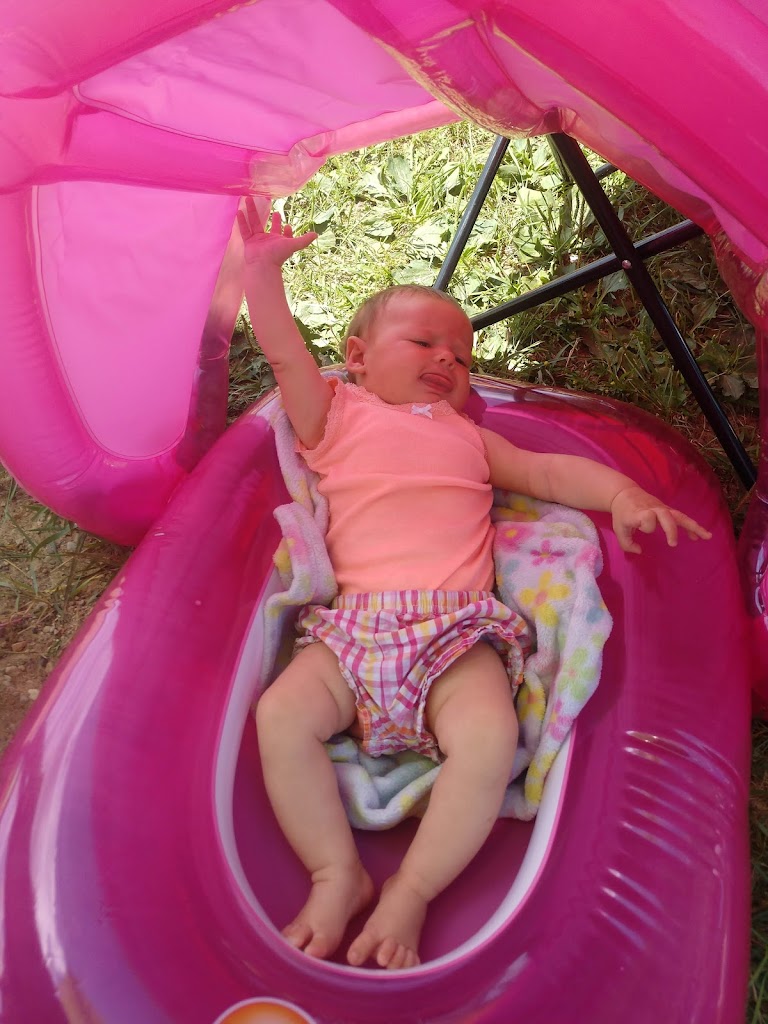 The food was decent. I had a grilled chicken sandwich, some fried cheesey things and hot wings. We swam in the lake despite the rain, and the little sunfish nibbled my toes!