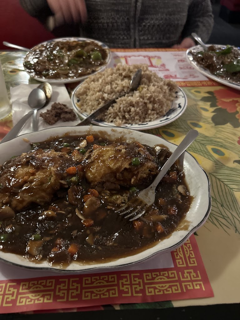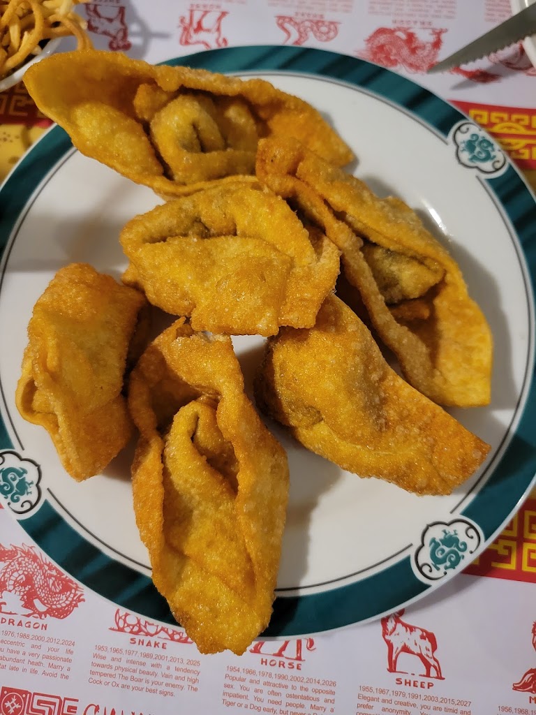 Huge portions of food. Everything was great. Except I did not like their crab Rangoon. A little too much cream cheese for my taste. But I only spent $52 plus tip for 2 people and had enough food that I got 3 meals out of it. The egg drop soup is homemade and I would highly recommend