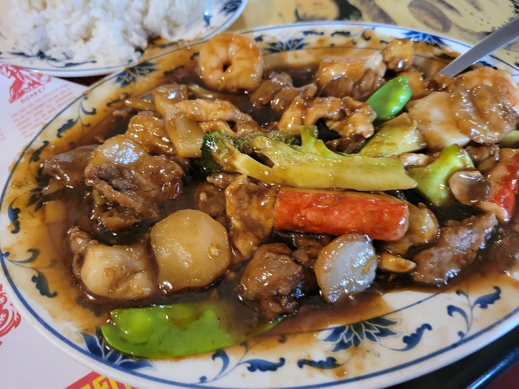 My absolute favorite Chinese restaurant that I've been too, and I eat Chinese all over while traveling. Peking slices steak is great, love the egg drop or sizzling rice soup, and the best egg rolls I've had. Still the best. Large lunch portions with a soup for $11. Food comes out quick and hot. Much better than the small fast food chinese spots.