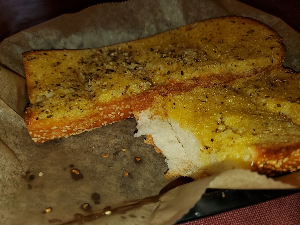 Garlic bread and pizza were both excellent. Waitress could have checked in a little more. Waited quite a while for soda refills.