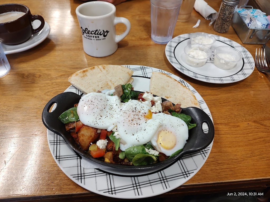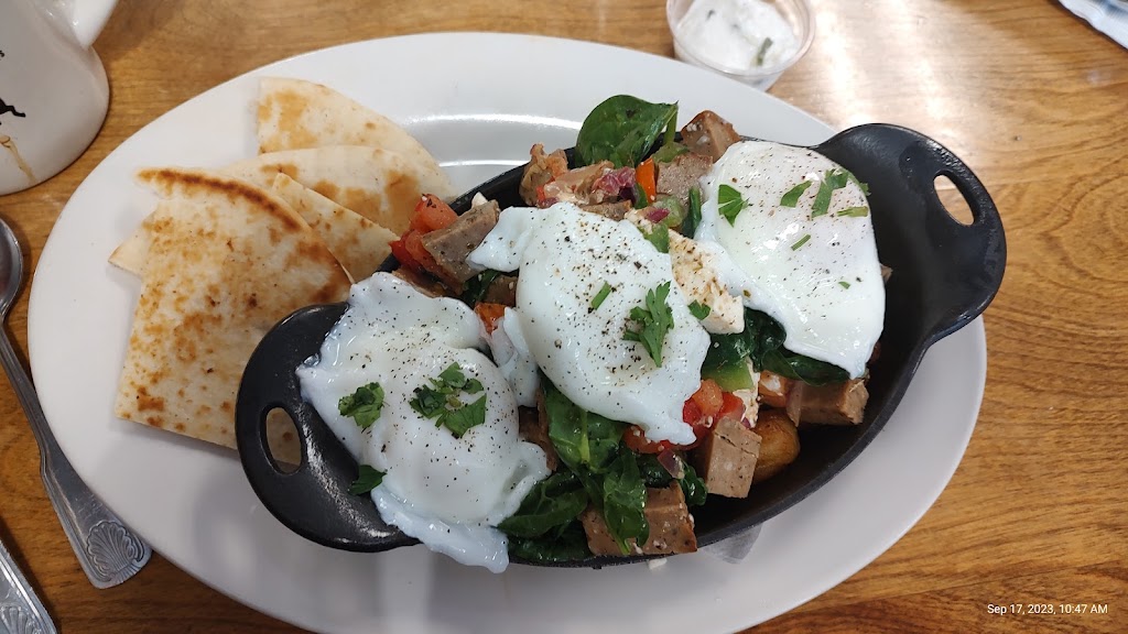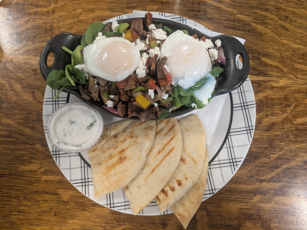 I have been here several times and always had a good experience however today the cafe was extremely crowded. Our food took a long time and I felt that my eggs Benedict which I have had before must have been sitting for a while barely warm. My husband had the gyro special which was very good and hot. I love this place but was disappointed this time