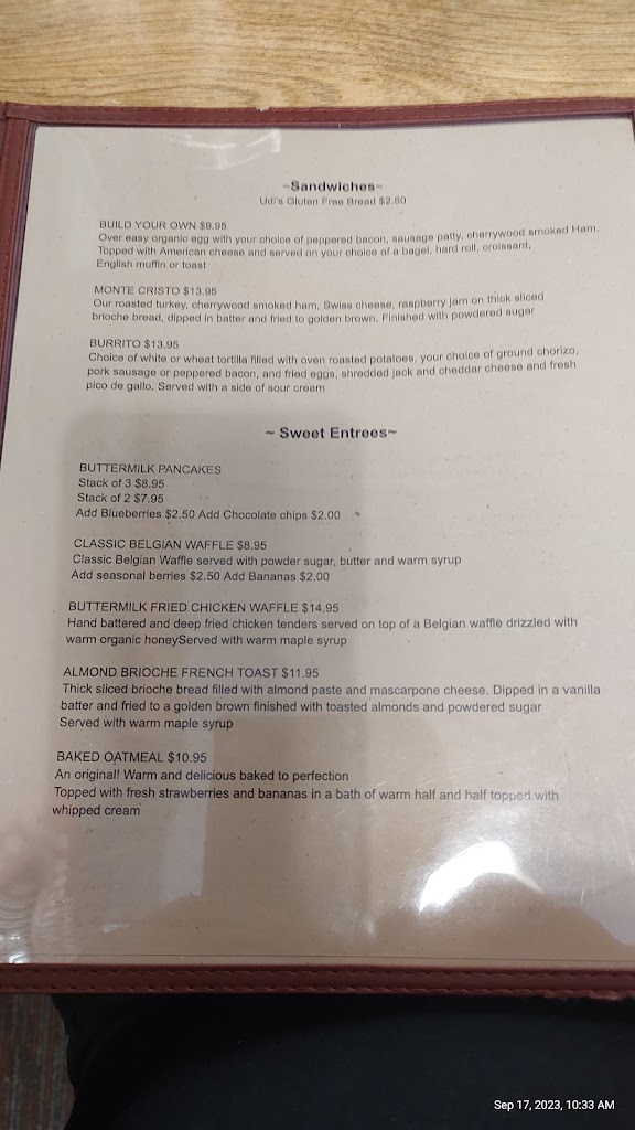 This used to be my go-to place when I was in the Hartford area, but it changed management last fall. Unfortunately, I didn't know that! I had a Monte Cristo sandwich ($15.99). When it was served, it was soggy with grease and didn't match the menu description. My sister ordered chicken and waffles, but the chicken seemed like something you'd buy frozen at Costco. Our bill was over $30. Very disappointing. I won't be returning.