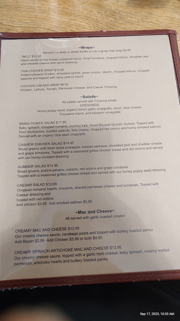 The food was good not great and expensive for what it was. The waitress was very nice. When I ordered a wrap without tomato and onion and it came with some, she took it back and got it fixed quickly.